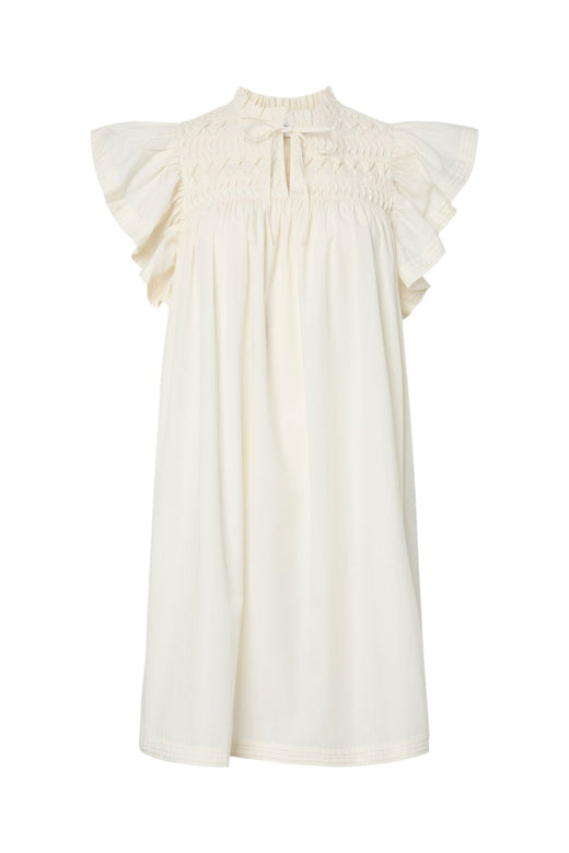 Svart kjole fra Only med båthals og lange ermer. Overdelen er tettsittende, mens underdelen har et lagdelt, vevd design med volanger.