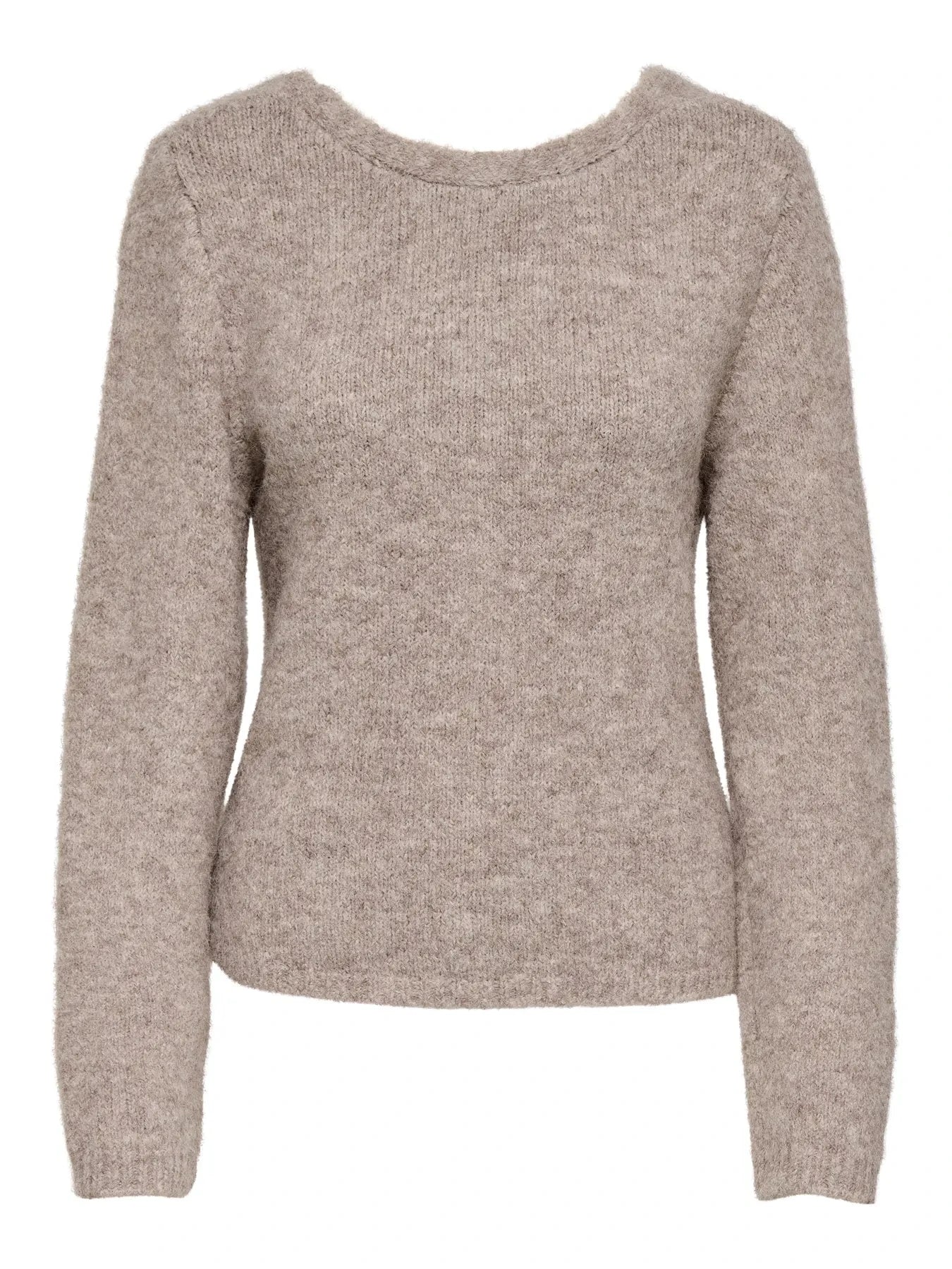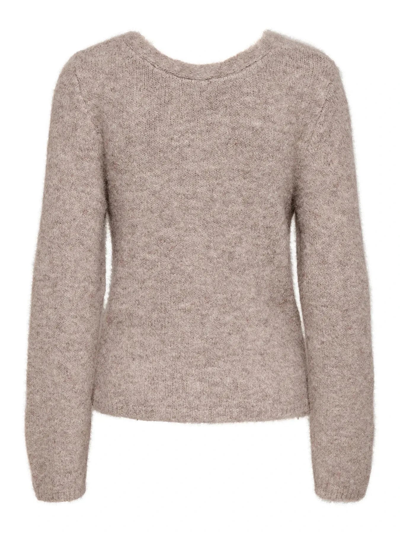 Beige strikkegenser fra Only med en melert overflate. Genseren er vendbar med både V-hals og rund hals.