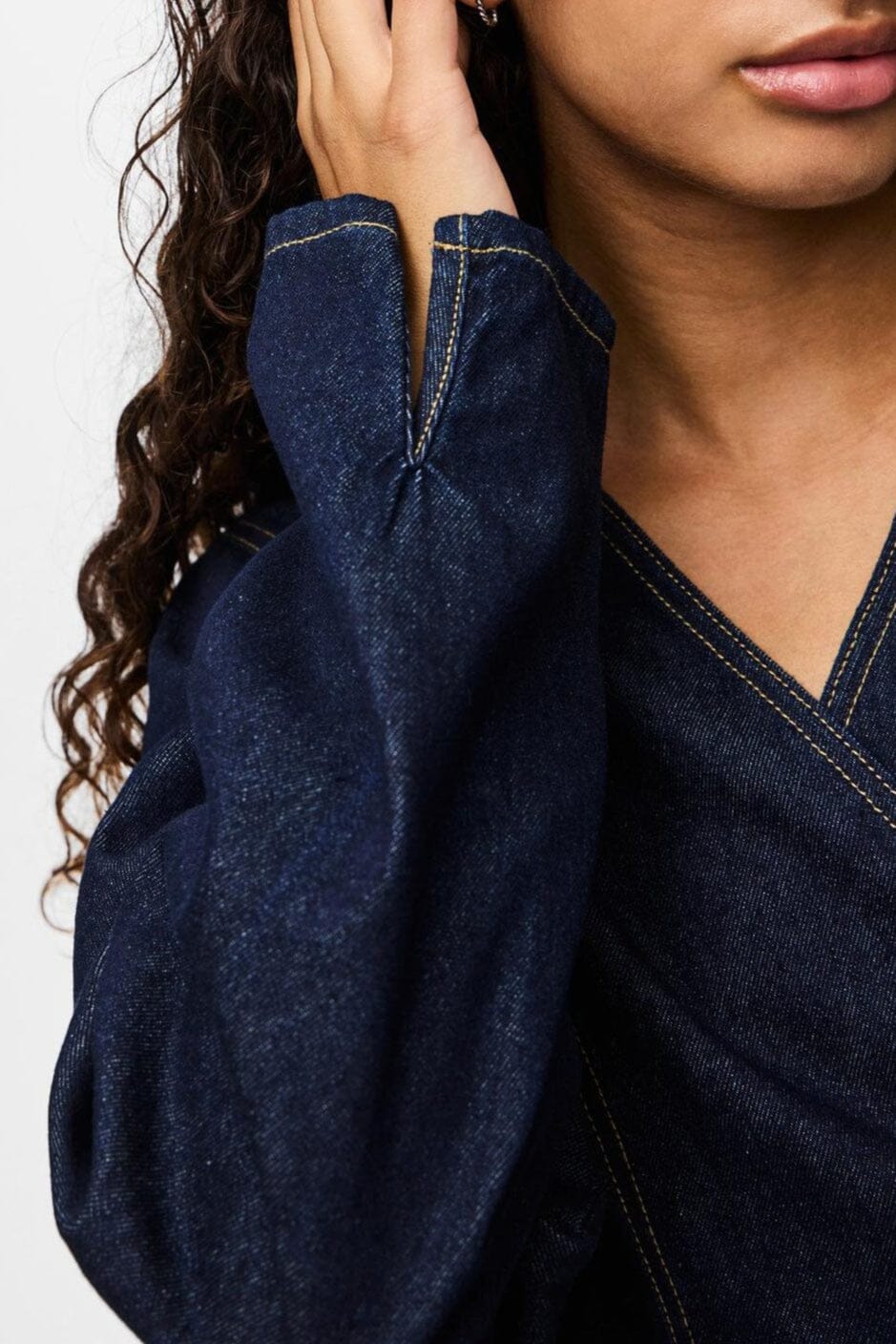 Pieces Pcfenna Ls Denim Wrap Shirt Fsy Farge: 4986826 Dark Blue Denim Rinse