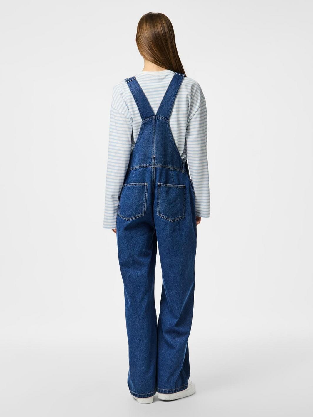 Denim-overall fra Pieces i mørkeblå denim med sterk bomullsblanding. Overallen har en loose fit-passform med spenneknapping og praktiske lommer både foran og bak.