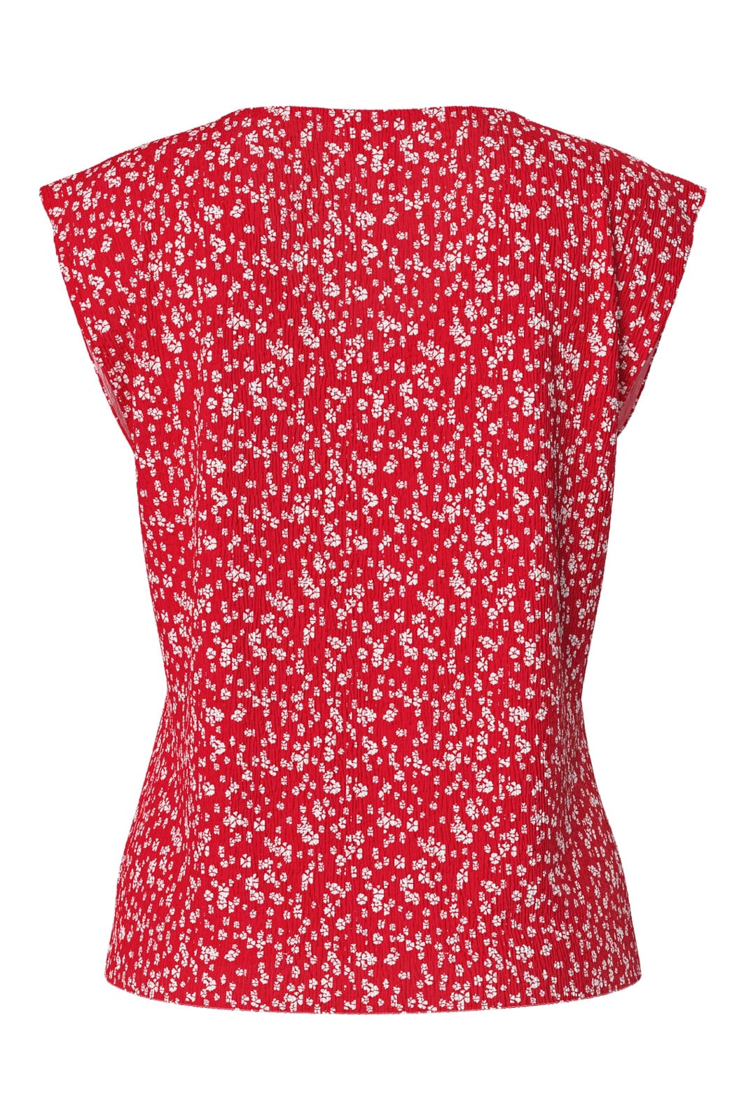 En blomstret topp fra Pieces med V-hals og korte ermer. Den har et småblomstret mønster på hele overflaten og en silkeaktig tekstur som gir et mykt fall.