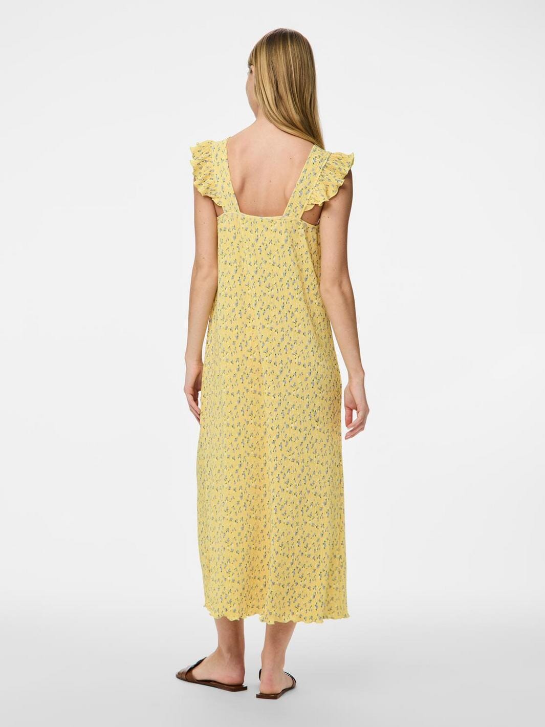 Pieces Pcflora Strap Flounce Dress Farge: 4699183 Pale Banana Small Flower