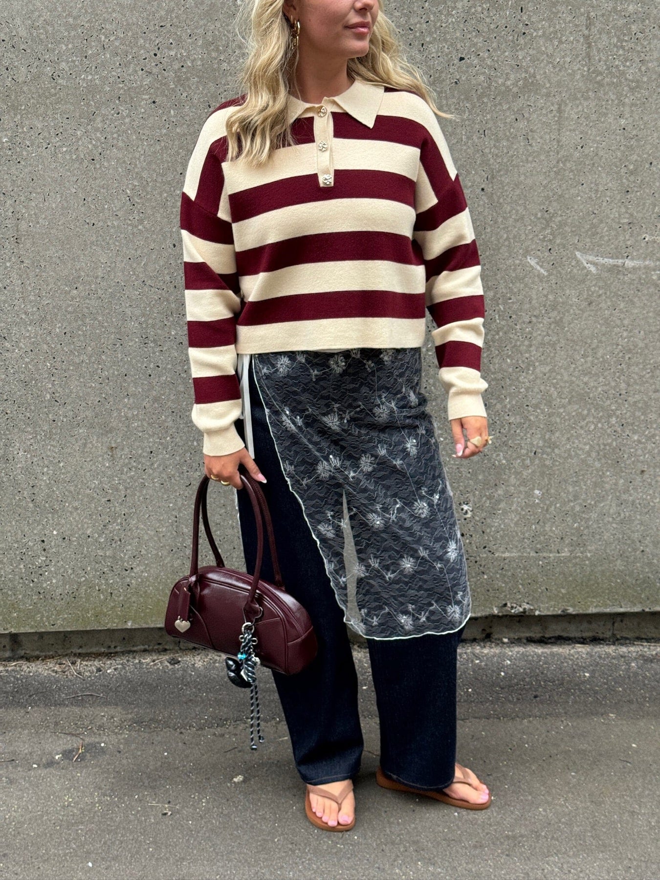 Pieces Pcjassy Ls Short Polo Knit Farge: 5040020 Winetasting Birch