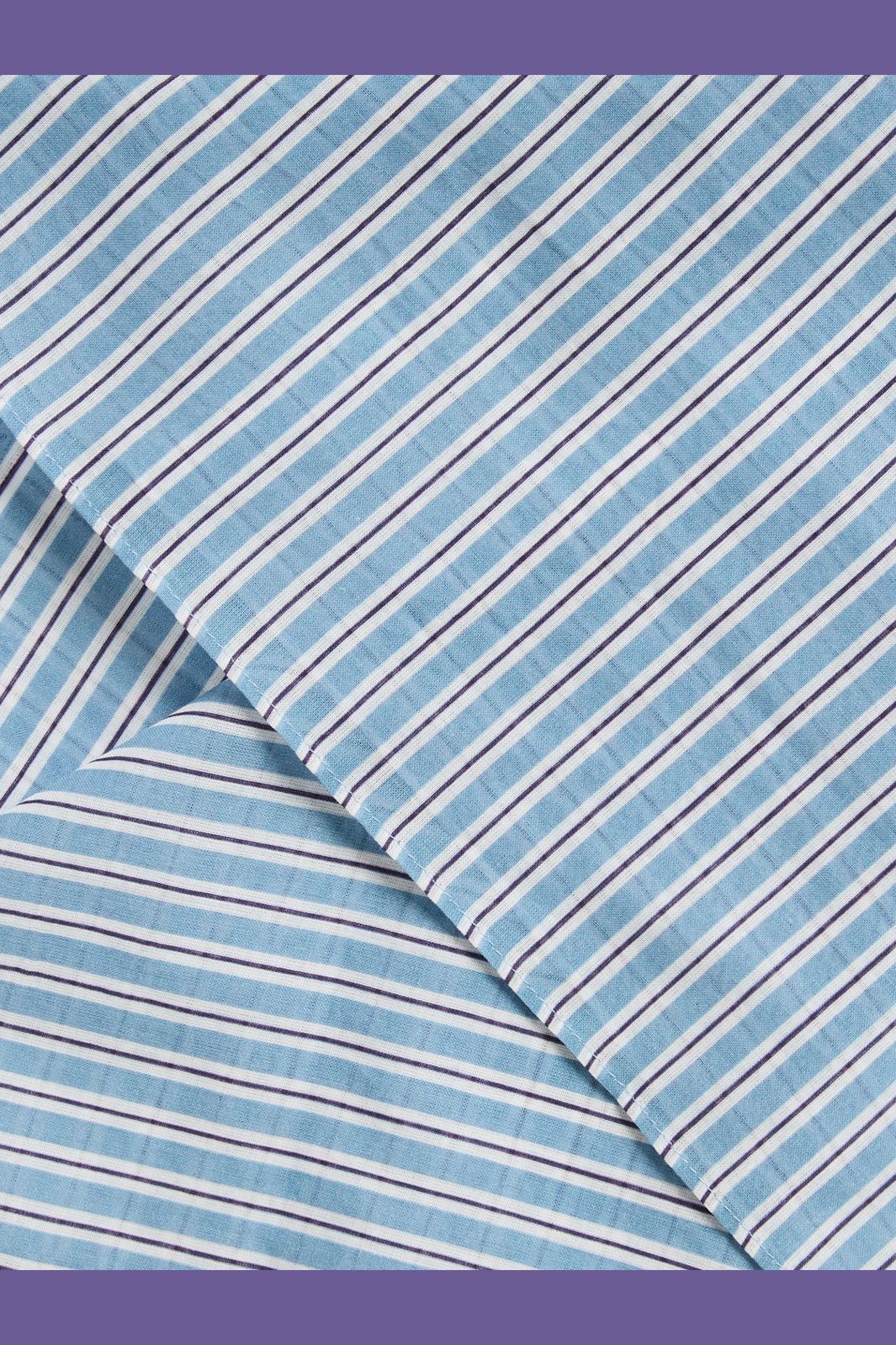 Firkantet skjerf fra Pieces i lyseblå og mørkeblå nyanser. Det stripete designet er vevd i økologisk bomull med et klassisk mønster av hvite og blå striper.