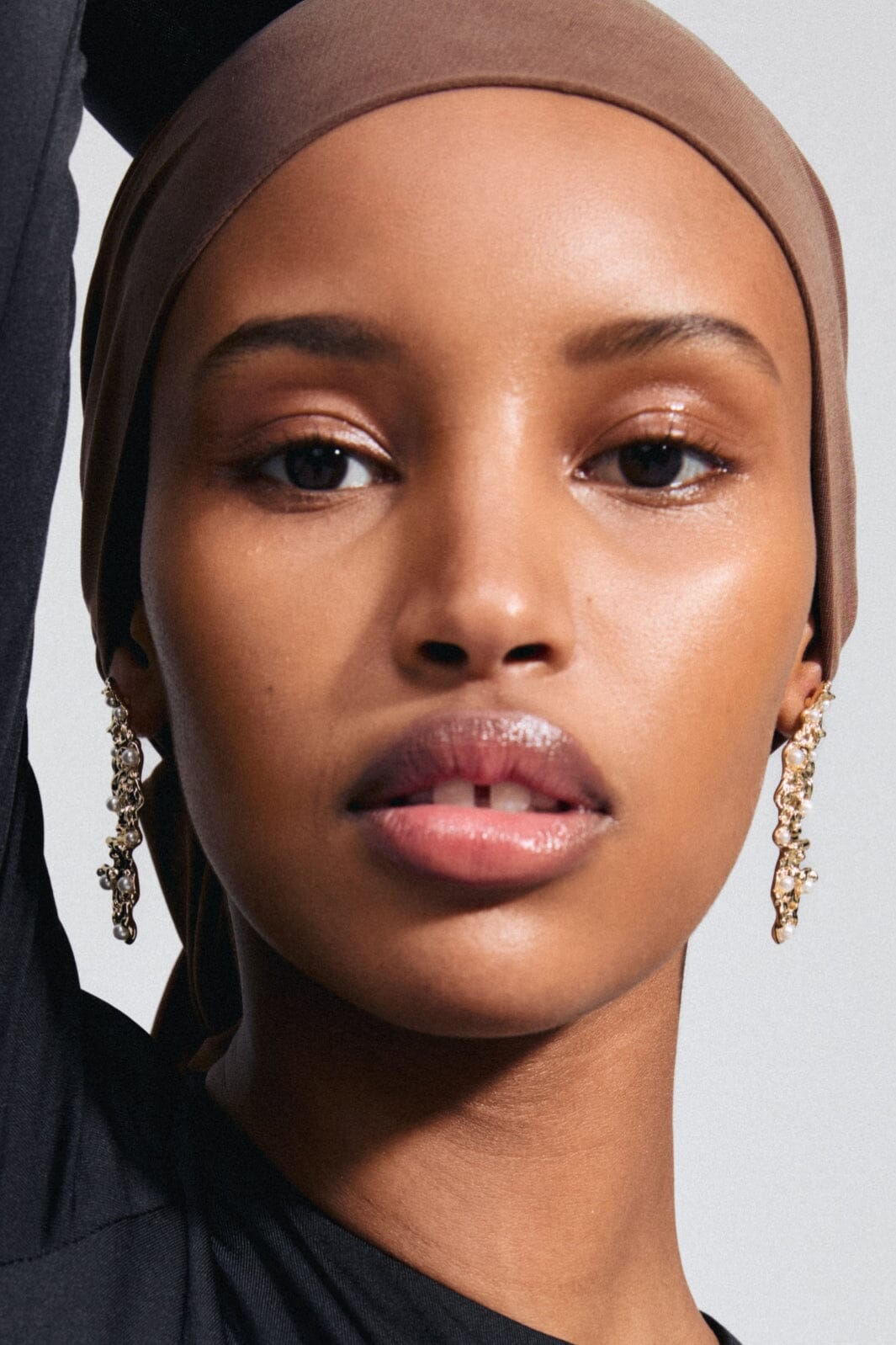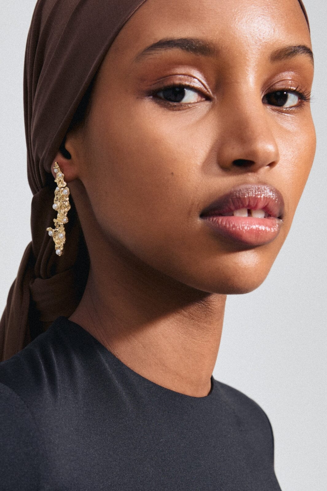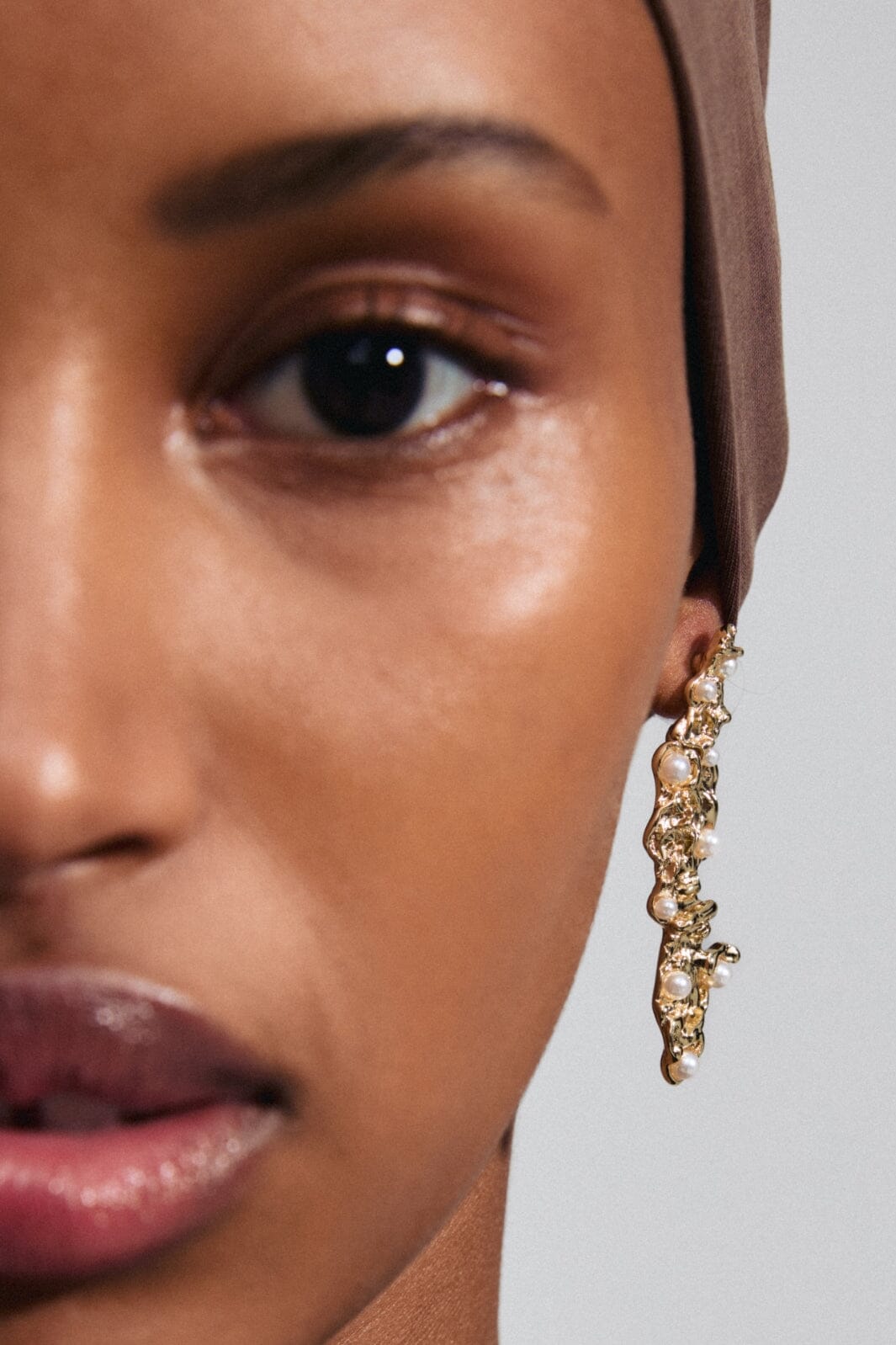Gullbelagte øredobber fra Pilgrim med en organisk tekstur og små perler. Den strukturerte overflaten gir øredobbene et særpreg, mens perlene skaper kontrast til det gyldne metallet.