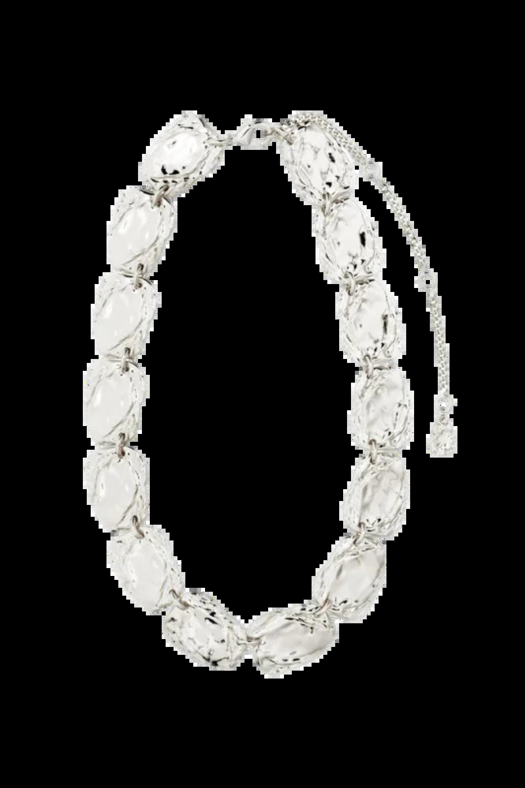 Sølvbelagt halskjede fra Pilgrim med rustikke, flate ledd. De teksturerte overflatene skaper et rått og kunstnerisk uttrykk, mens sølvbelegget gir en fin glans.