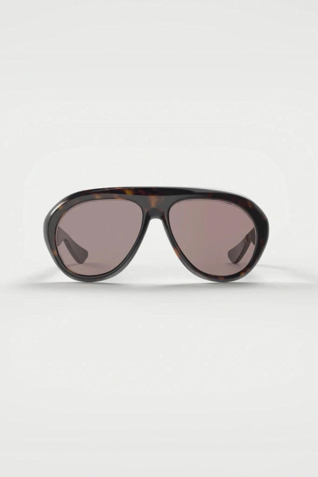 Solbriller fra Rotate i aviator-stil med et brunt skilpaddemønster. Innfatningen har en klassisk form med dobbel bro og tonede glass.