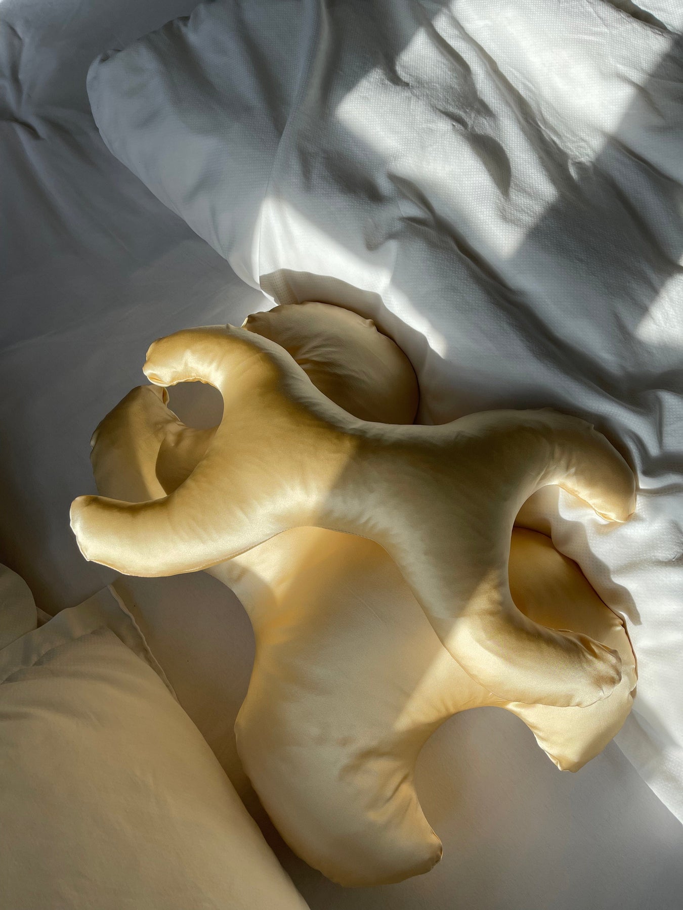Gullfarget putetrekk fra Save My Face med en spesialdesignet form. Trekket er laget av myk charmeuse-silke med temperaturregulerende og antibakterielle egenskaper.