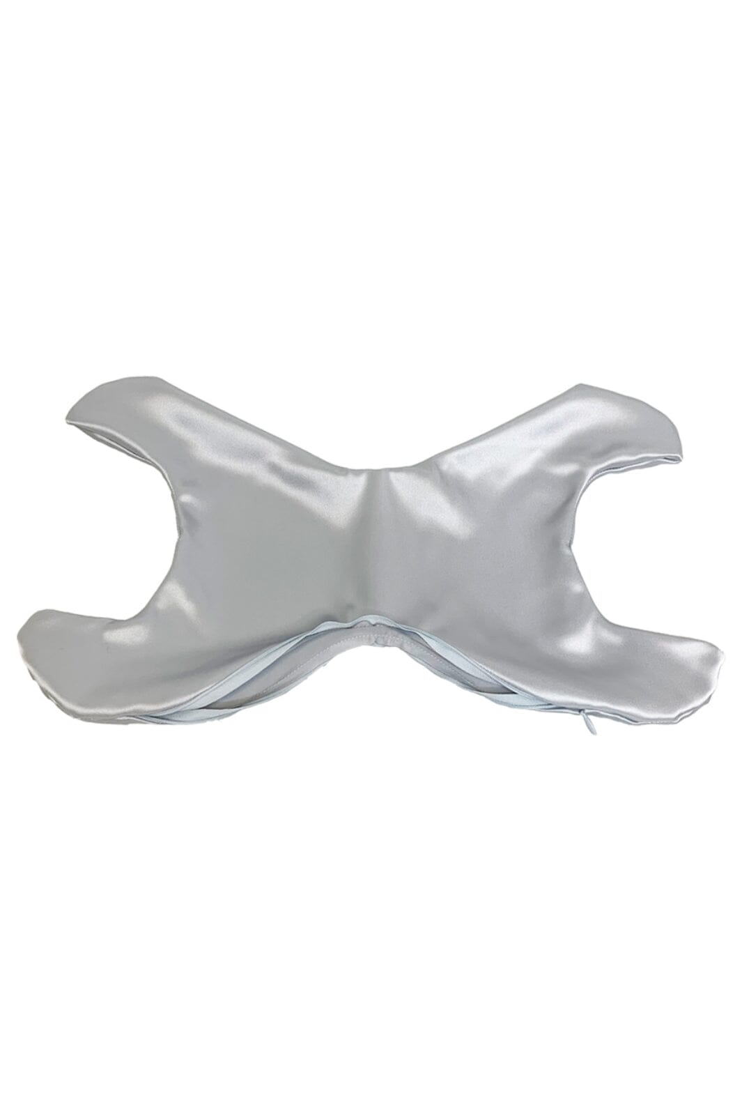 Putevar fra Save My Face i sølvfarget charmeuse-silke. Varet har en glatt overflate og er designet for La Petite-puten med en karakteristisk X-form.