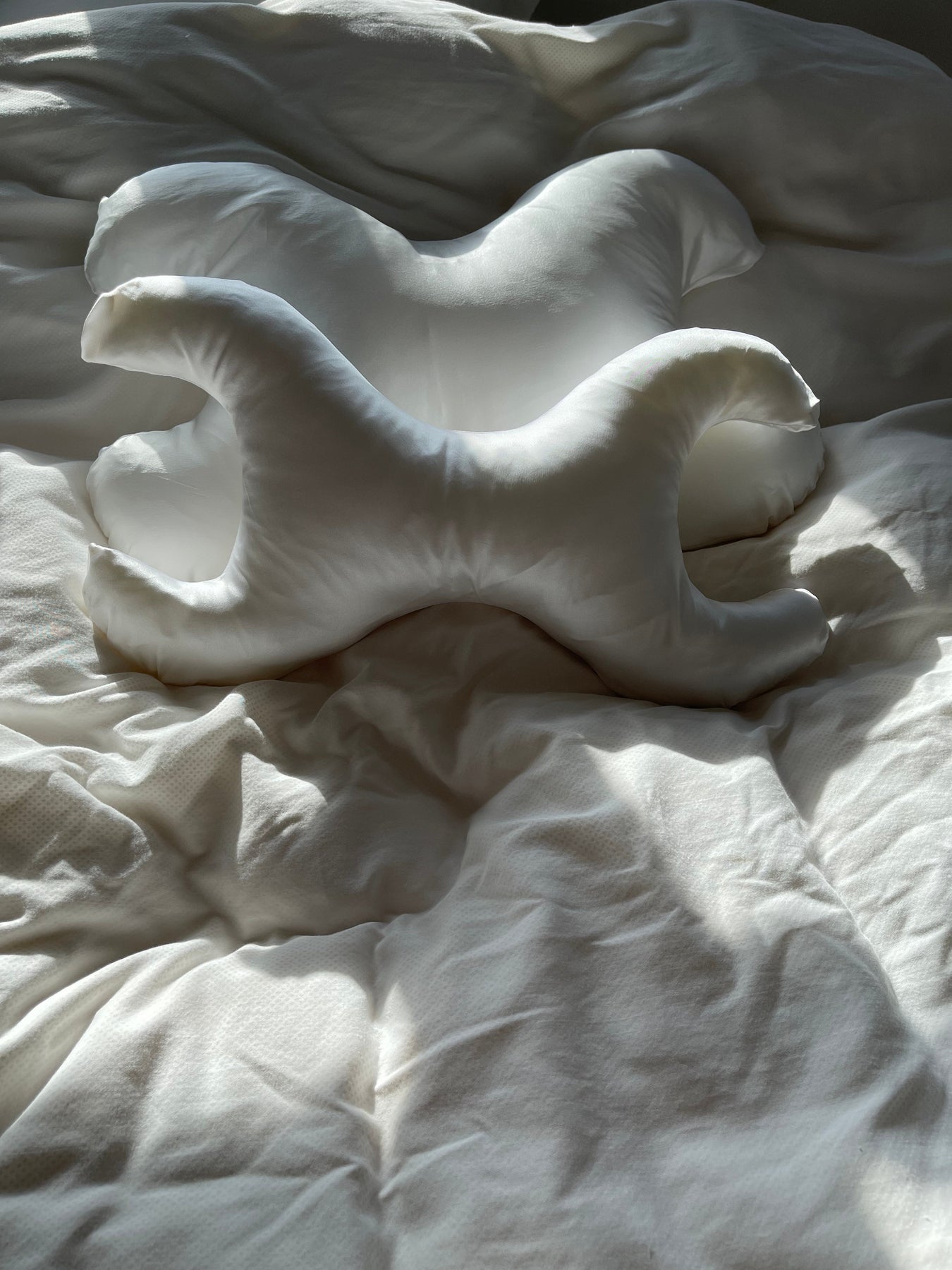 Hvitt putetrekk fra Save My Face i charmeuse-silke med temperaturregulerende og antiseptiske egenskaper. Trekket er spesialdesignet for Le Grand-puten.