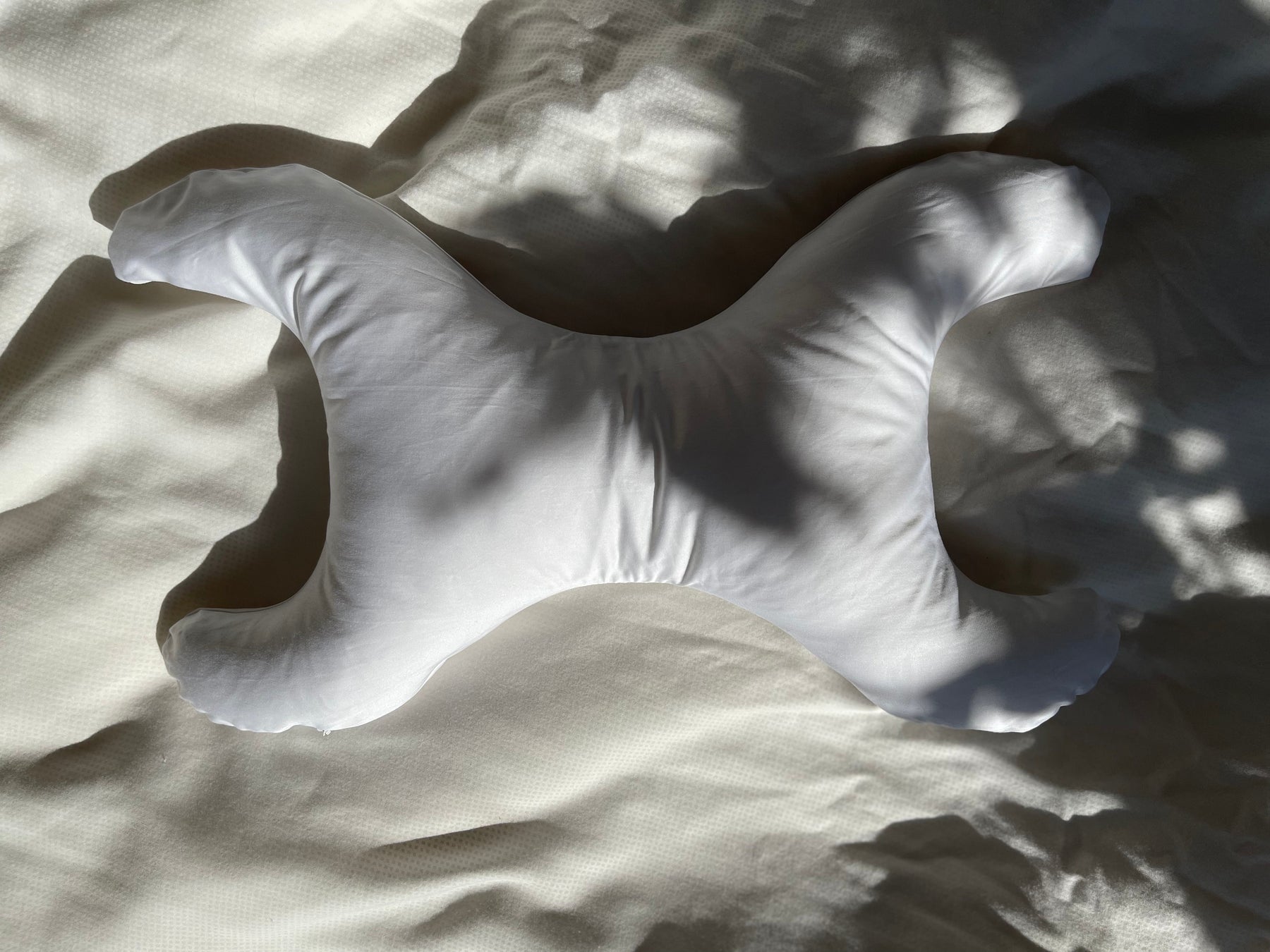 Hvit spesialpute fra Save My Face med X-formet design. Putene har et avtagbart trekk i hvit bomull og en spesiell fyllblanding som motstår fukt og svette.