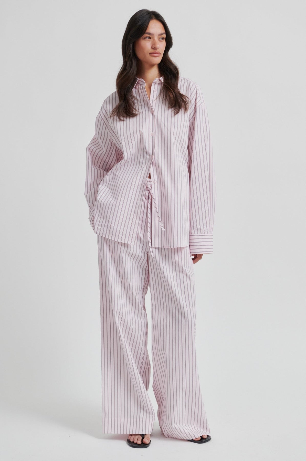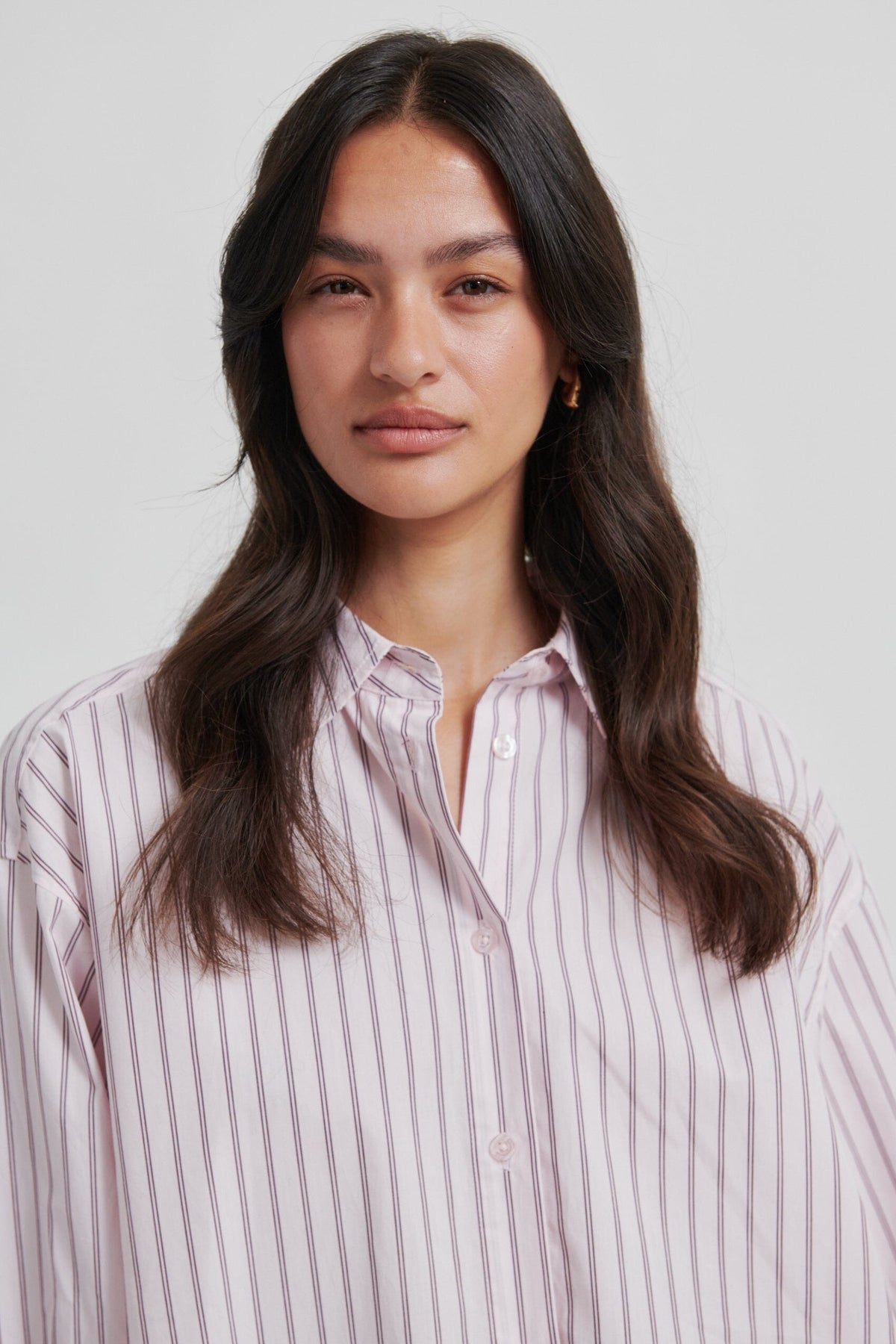 En stripete skjorte fra Second Female, laget av 100 % bomull i en lys lilla nyanse med vertikale striper.