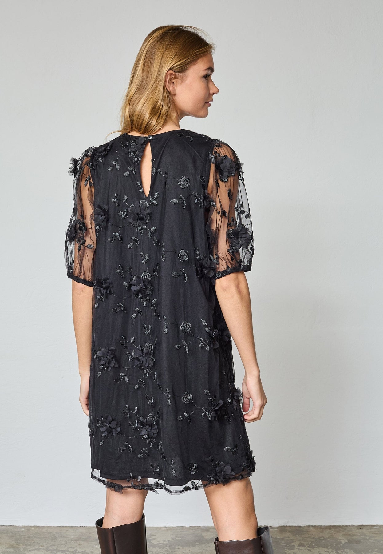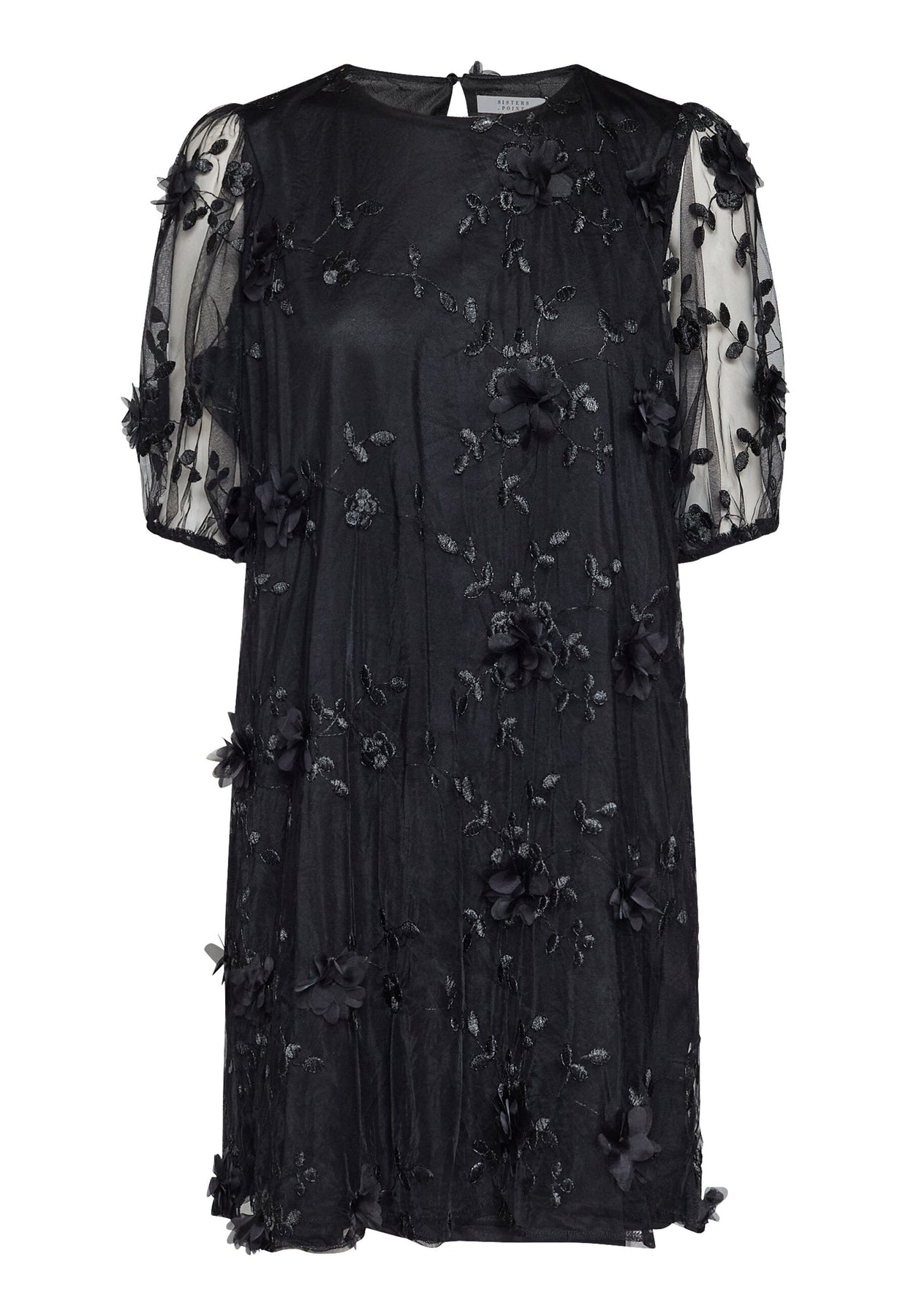 Svart kjole fra Sisters Point. Kjolen er laget av et lett, gjennomsiktig materiale og passer til både festlige og formelle anledninger.