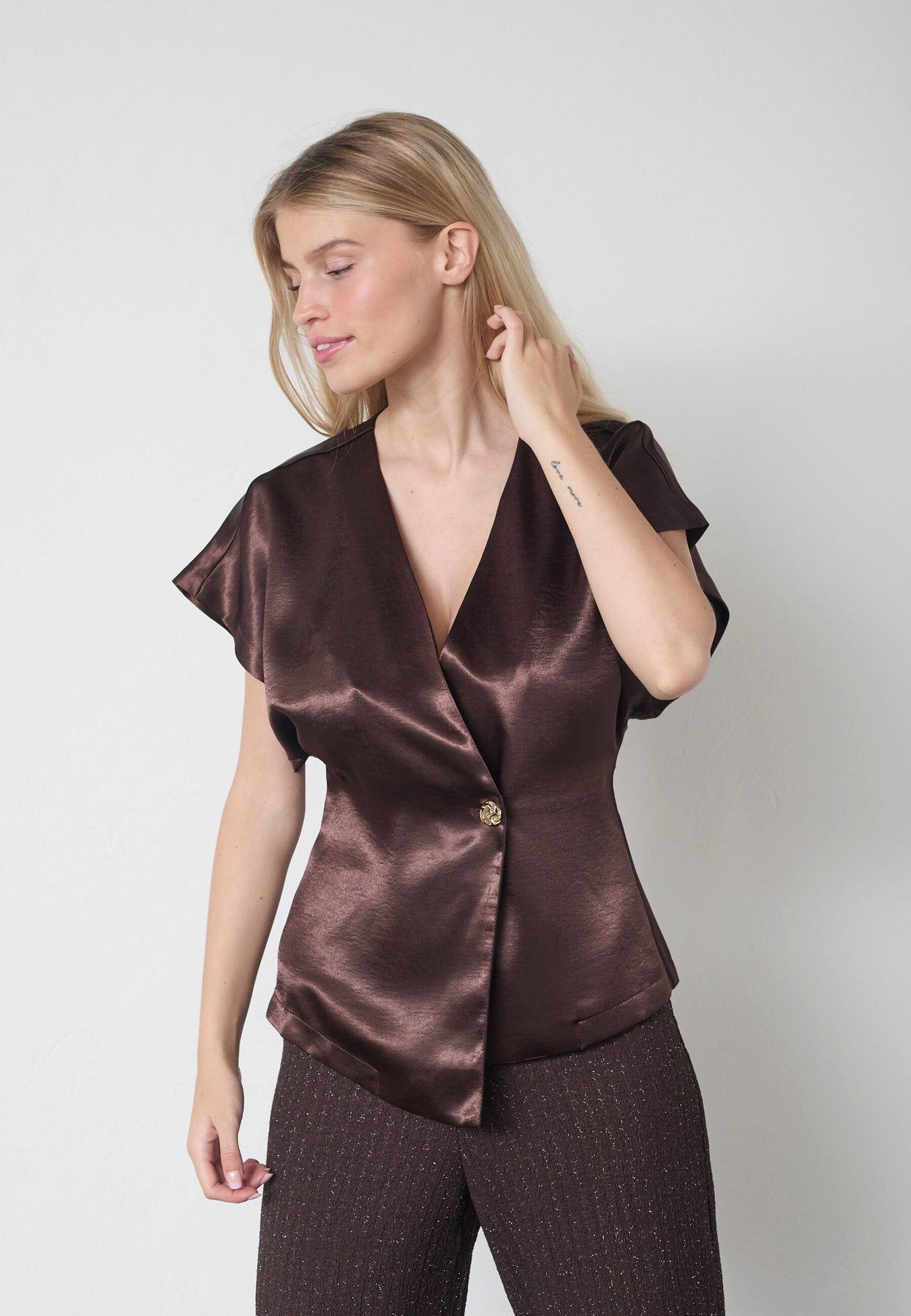 Brun topp fra Sisters Point i 100 % polyester. Toppen passer til formelle arrangementer og festlige anledninger.