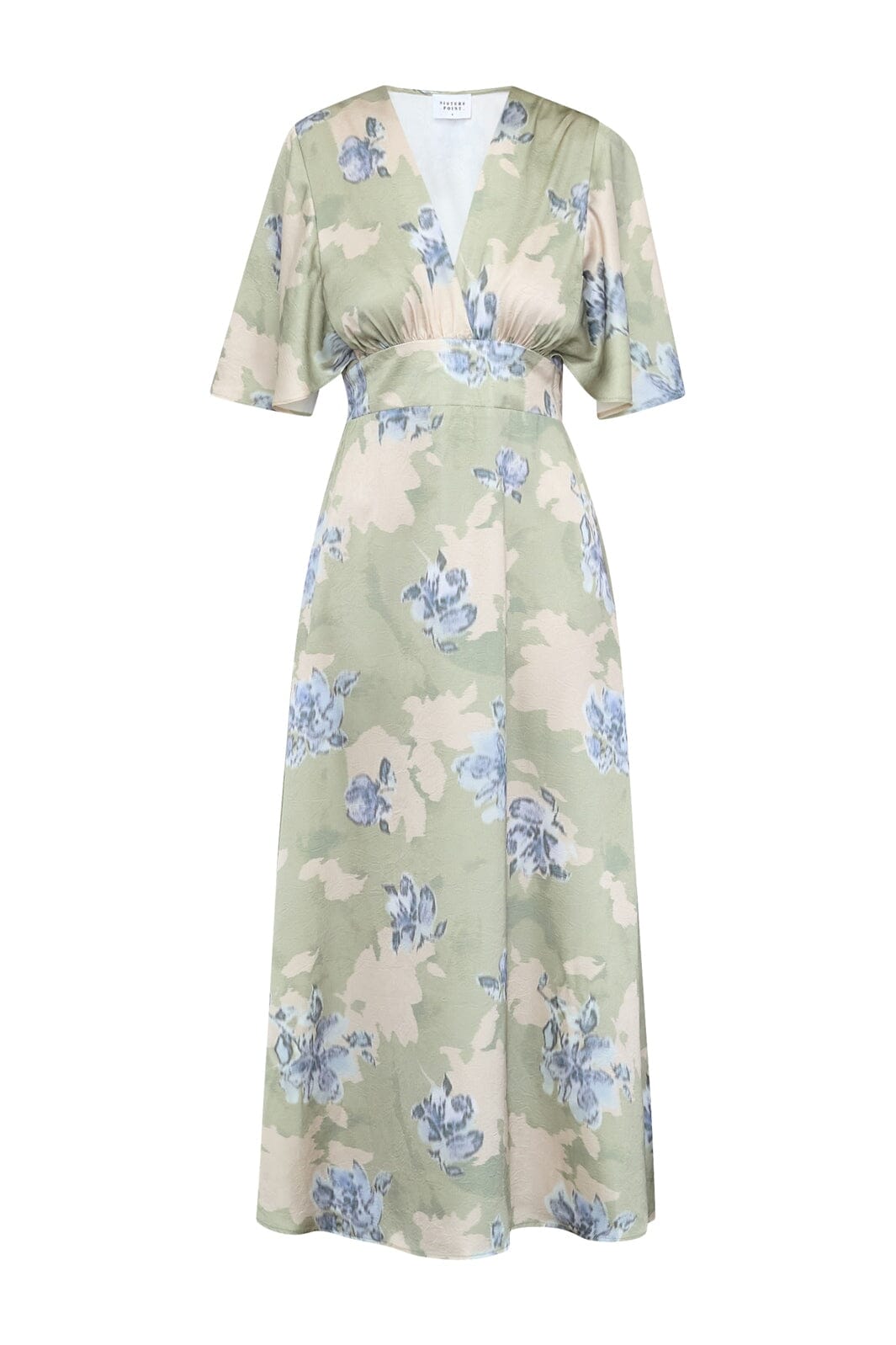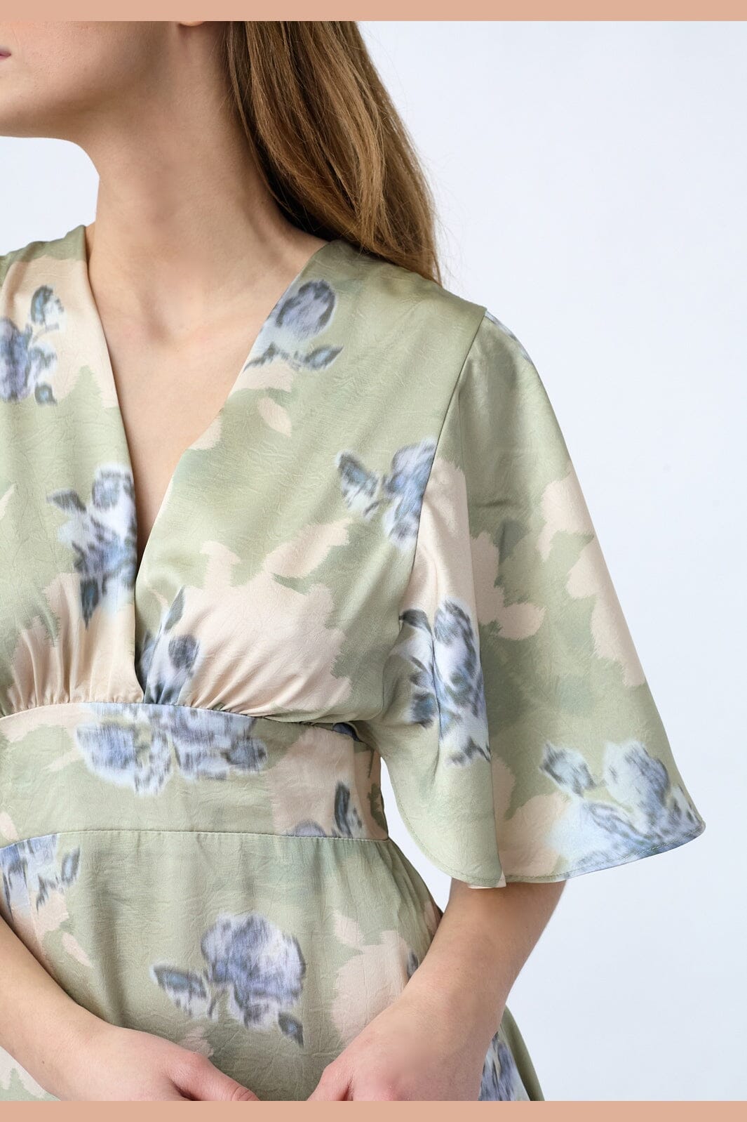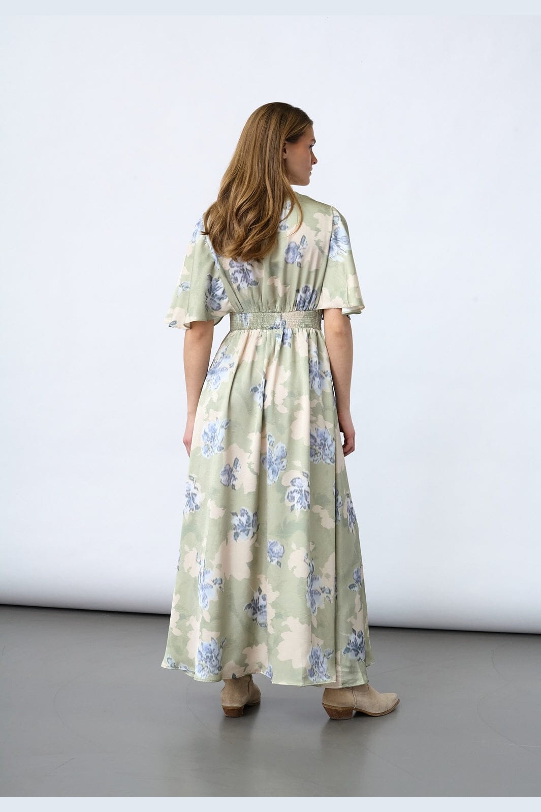 Kjole fra Sisters Point i en lysegrønn nyanse med blomster. Kombinasjonen av kamuflasje og blomsterprint gir kjolen et unikt uttrykk.