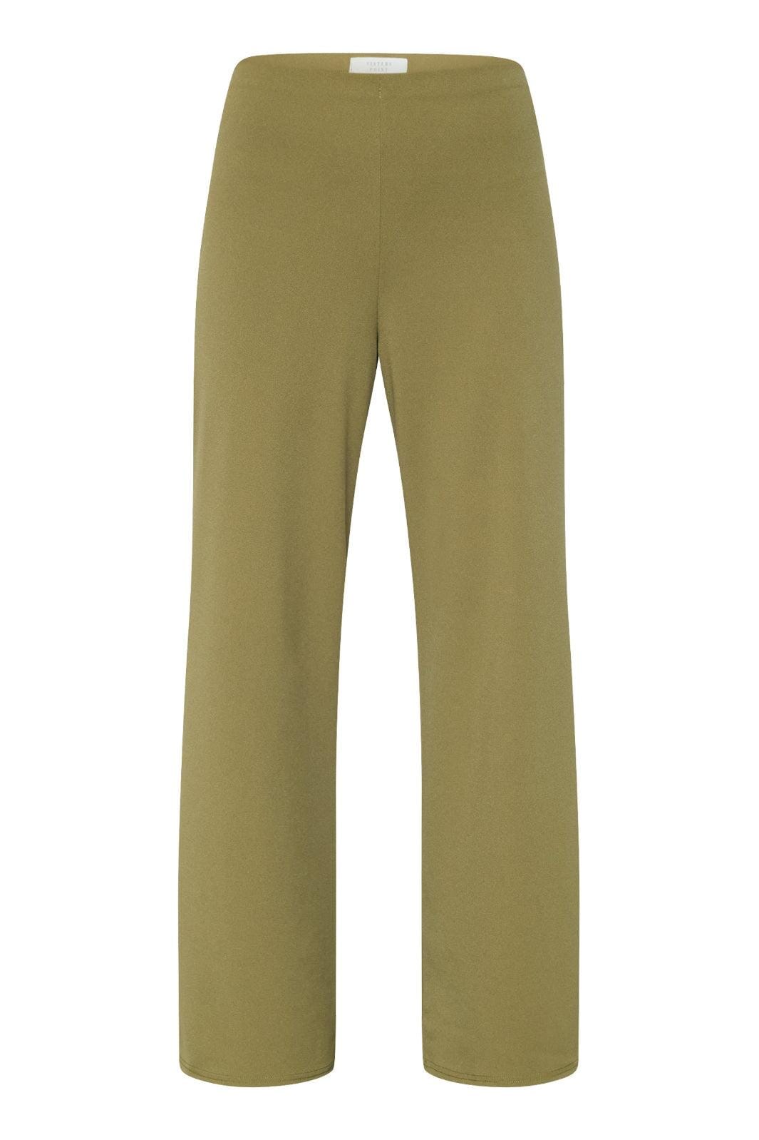 Bukser fra Sisters Point i olivengrønn med vide ben og en løs passform. Den høye midjen og det ensfargede designet gir buksene en moderne stil.