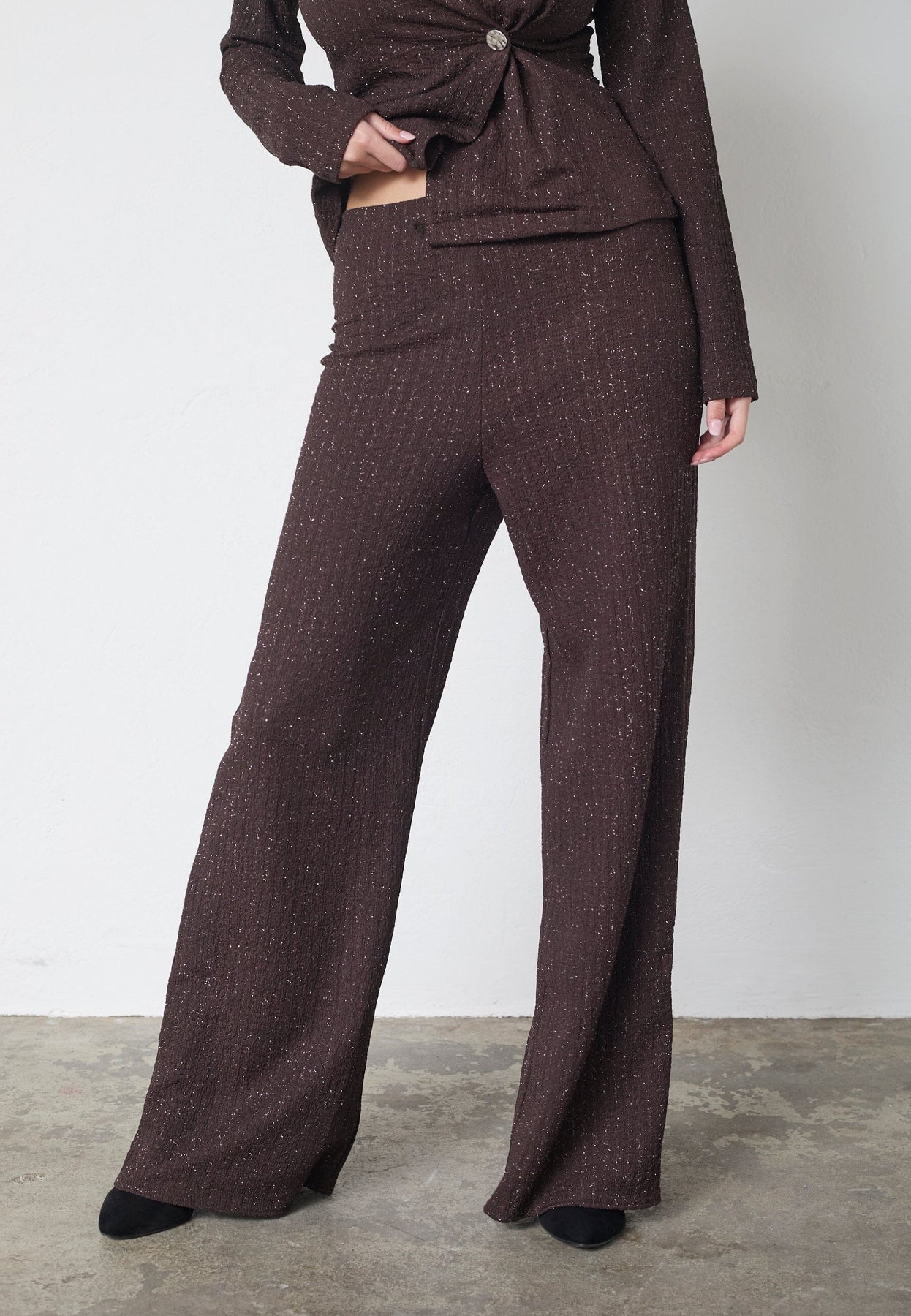 Bukser fra Sisters Point i brun farge med sølvglitter. Buksene passer til både festlige og formelle anledninger.