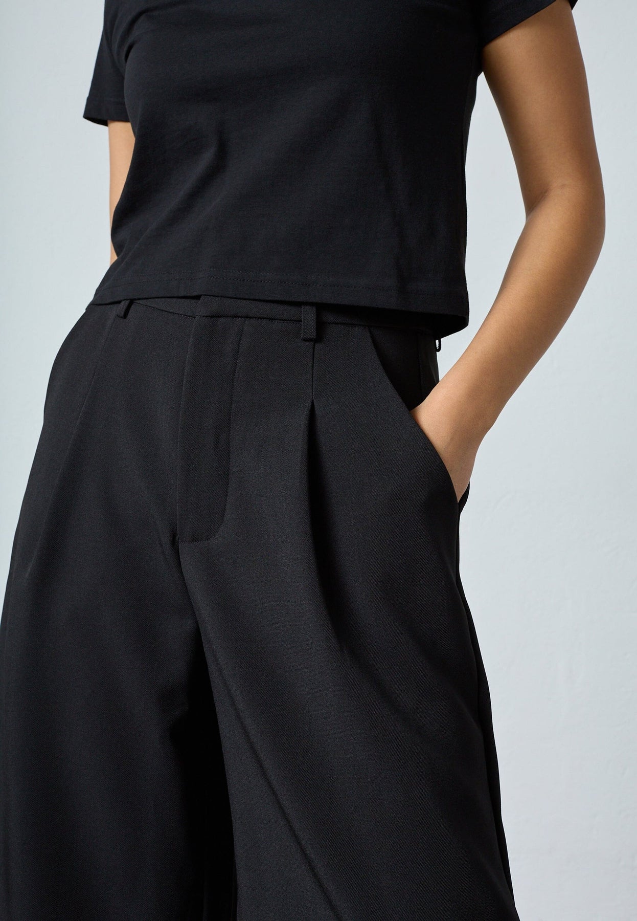 Svarte culotte-shorts fra Sisters Point med løs passform og knelengde. Shortsen har høy midje og legg foran.