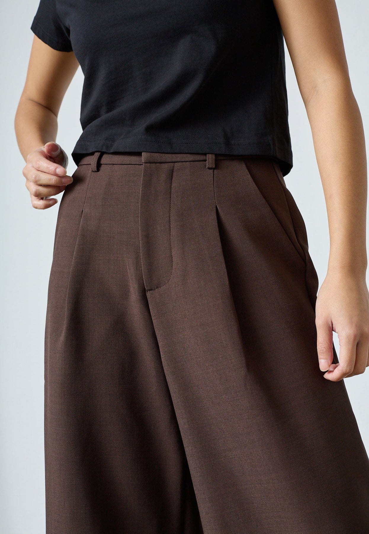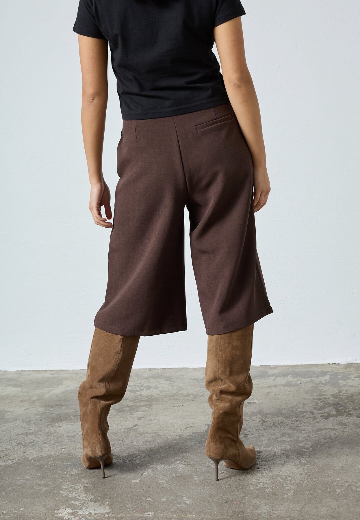 Sjokoladebrune shorts fra Sisters Point, laget av 92% polyester og 8% elastan. Shortsen har en løs passform og går like over kneet.