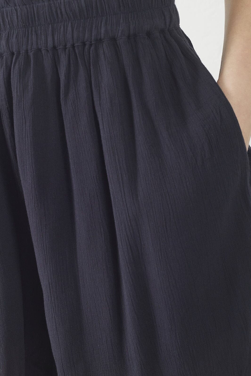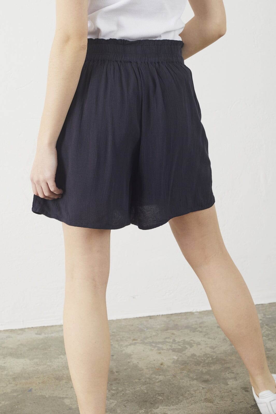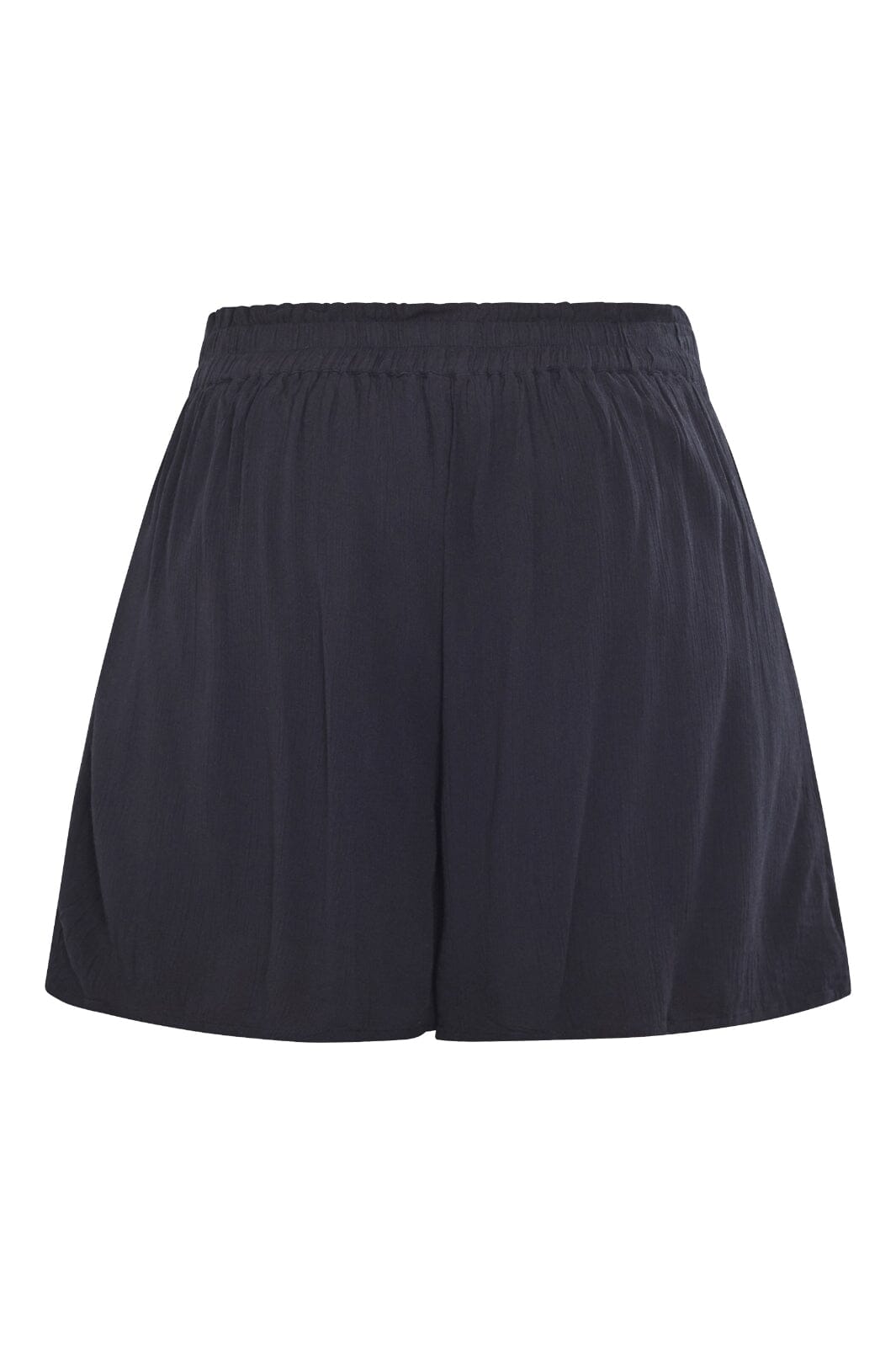 Svart shorts i lett viskose med elastikk og snor i livet. Det teksturerte materialet har en løs og avslappet passform med god bevegelsesfrihet.