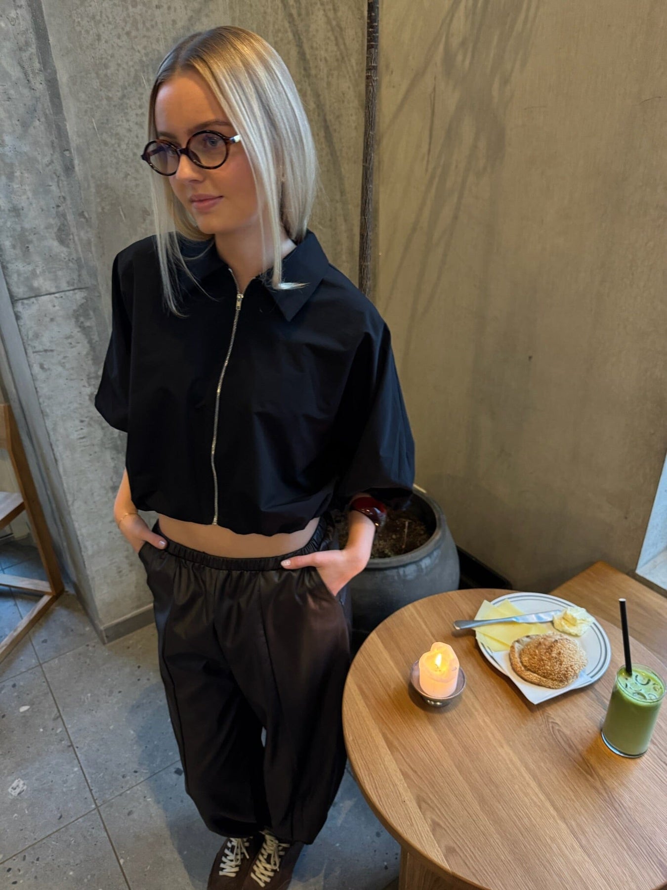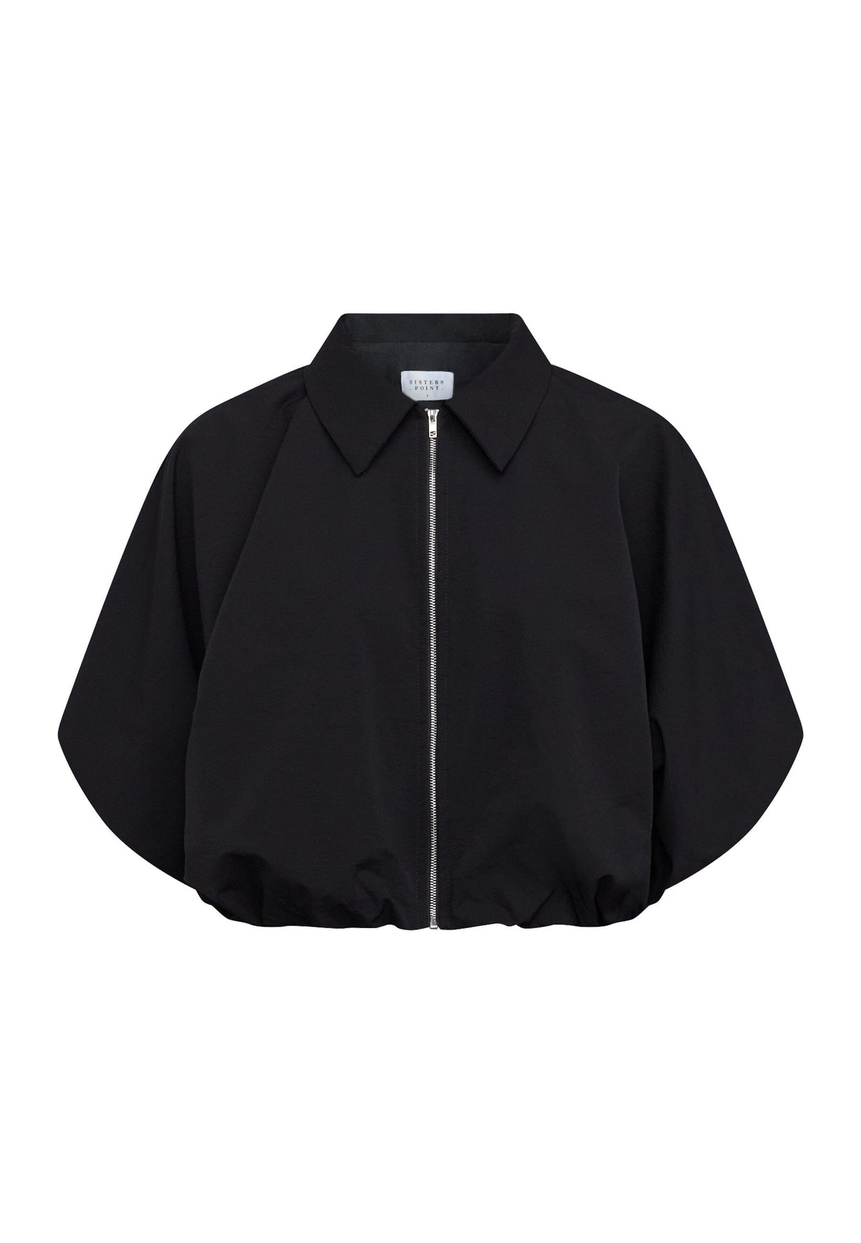 Svart jakke fra Sisters Point med skjortekrage og korte ermer. Jakken har en cropped lengde som stopper over midjen, og den er laget i ensfarget svart.