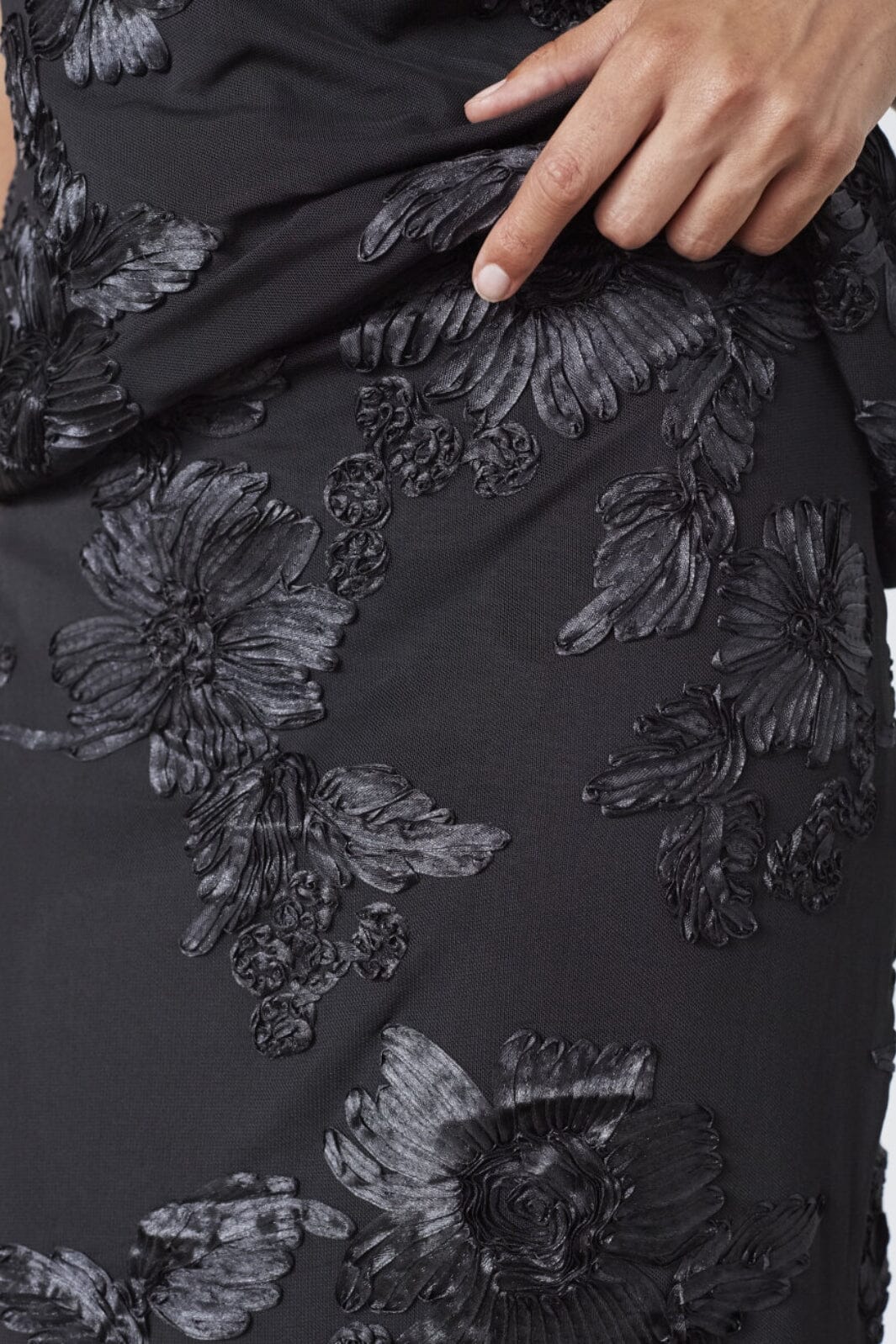 Sort skjørt fra Sisters Point med broderte blomstermotiver. Skjørtet er figursydd og passer til både festlige og formelle anledninger.
