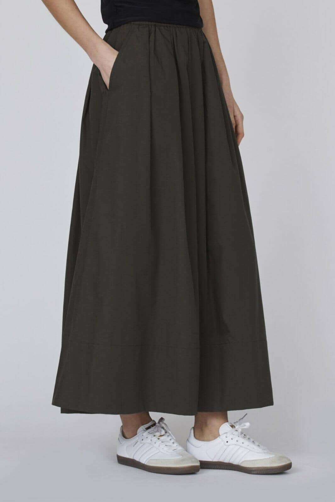 Lang skjørt fra Sisters Point i khaki. Den har en løs passform og elastisk midje med lommer i sidene.