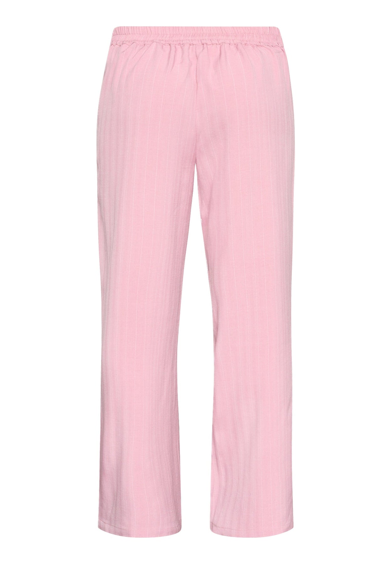 Rosa dressbukser med tynne striper fra Sisters Point. Buksene har høyt liv med elastisk kant og vide ben i en løs passform.
