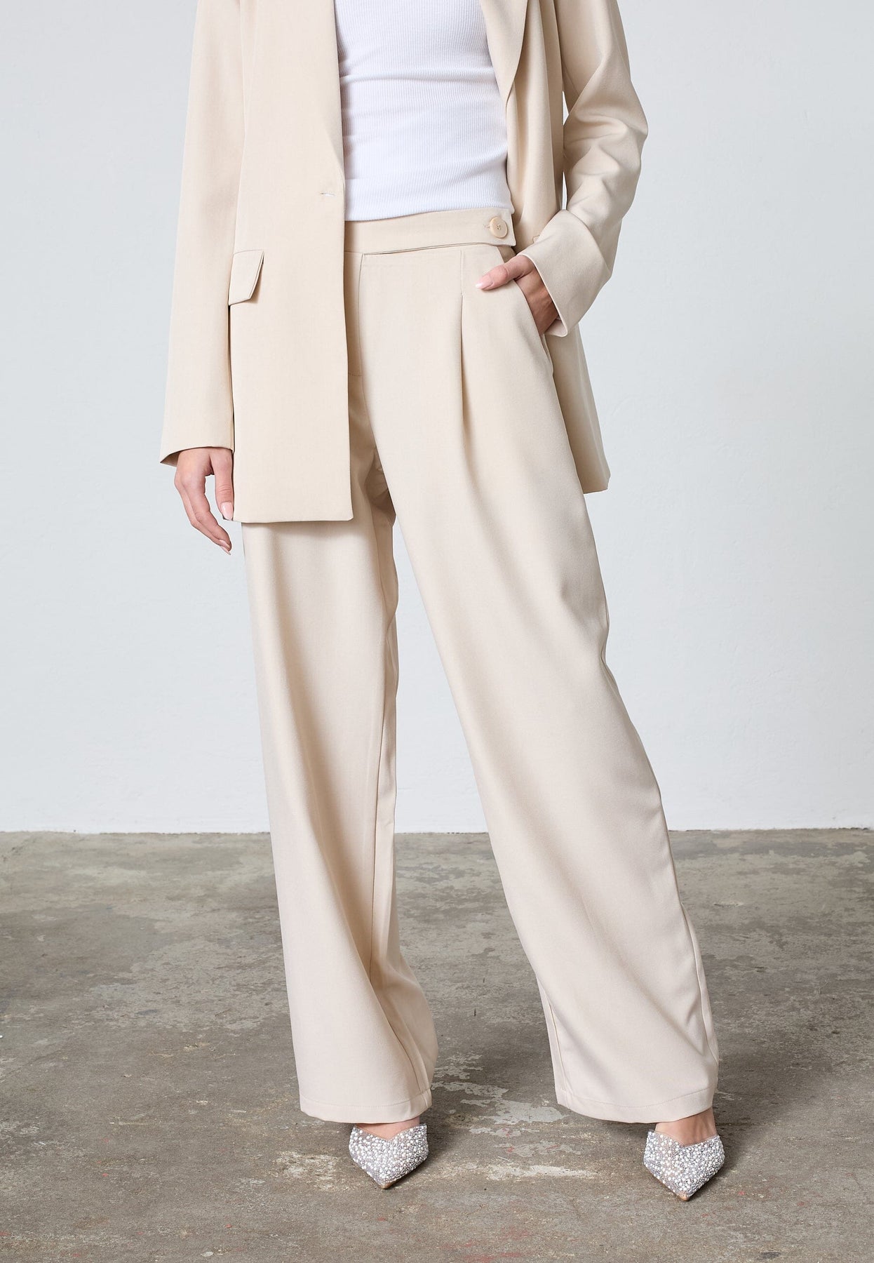 Bukser fra Sisters Point i en lys grå nyanse. Buksene har høy midje og en løs passform med vide ben.