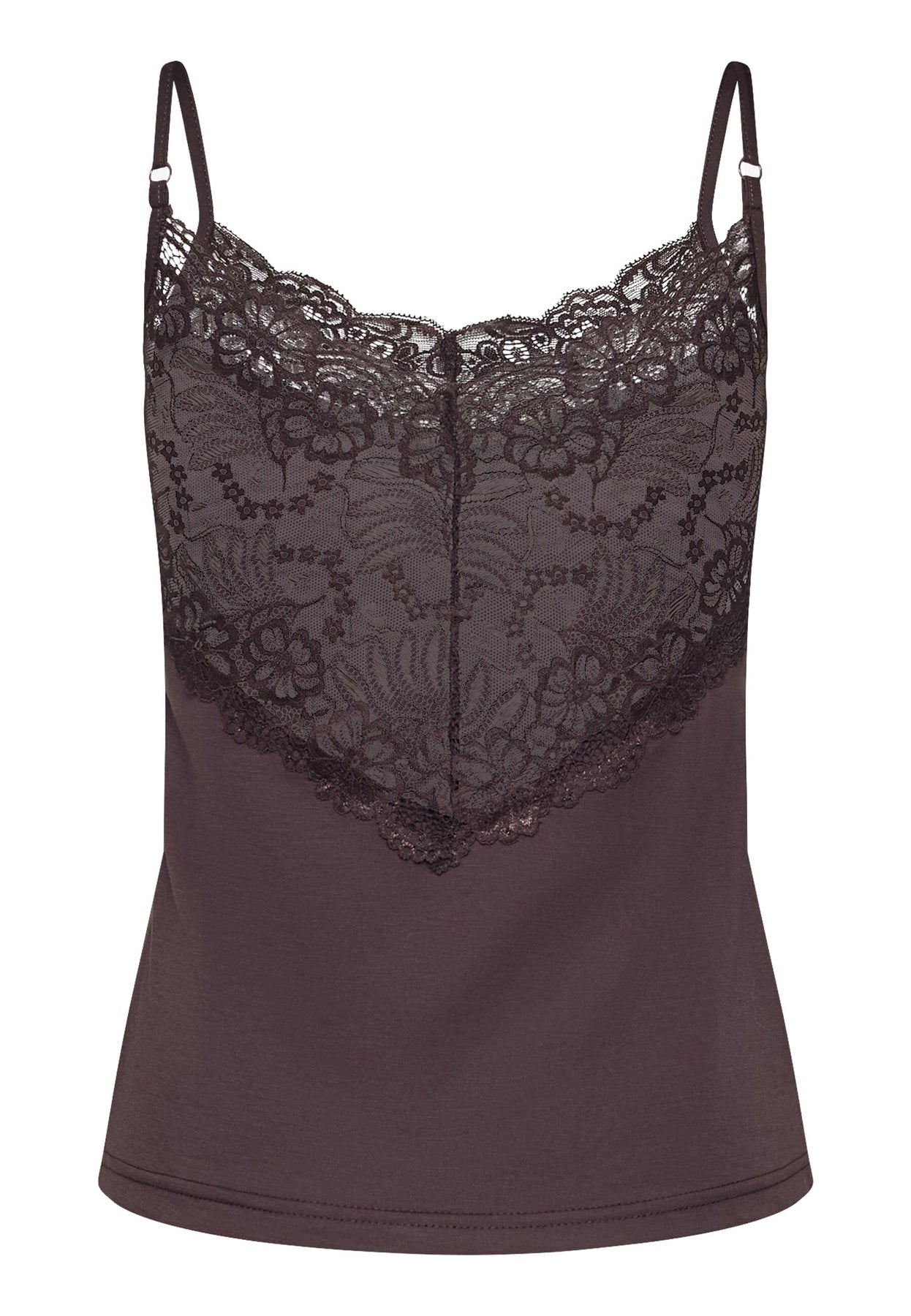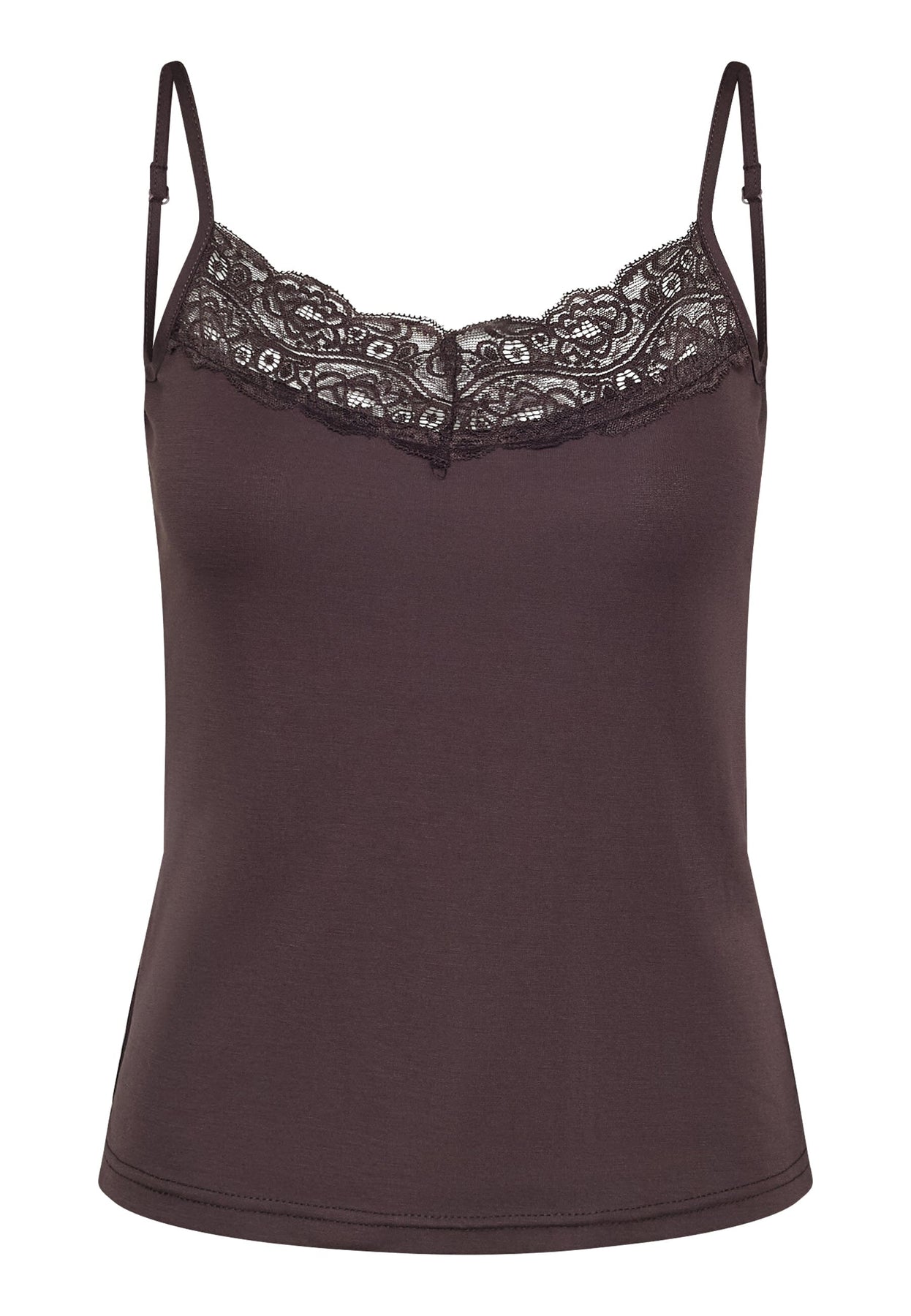 Topp fra Sisters Point i en dyp sjokoladebrun nyanse. Laget av 60 % viskose, 35 % polyester og 5 % elastan.
