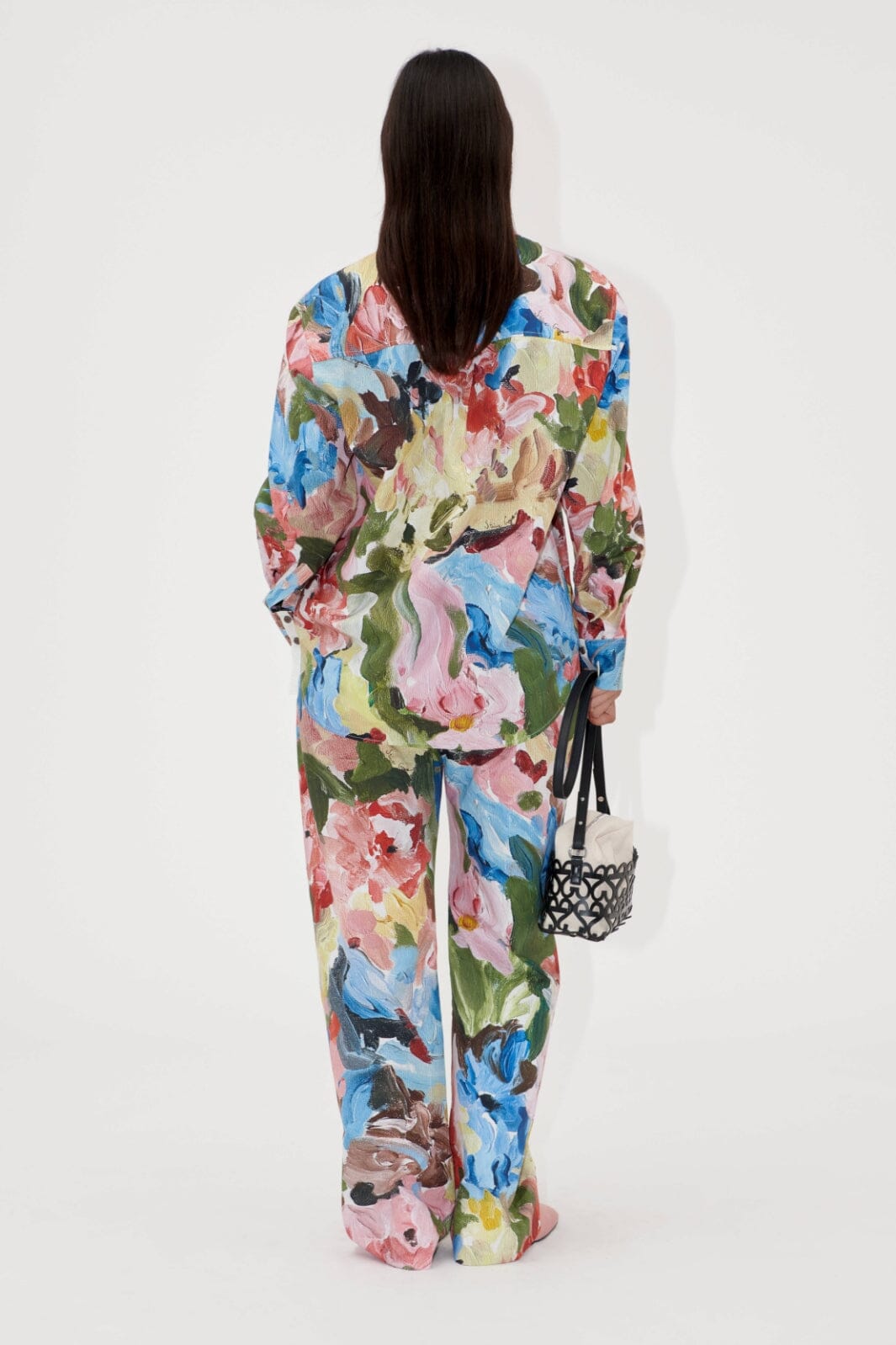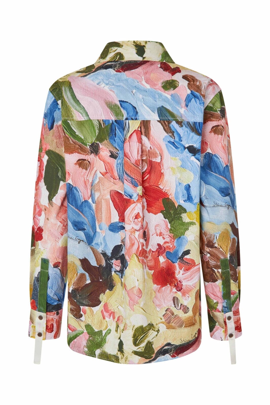 Skjorte fra Stine Goya med blomstermønster i rosa, blå og grønne nyanser. Den mellomtunge bomullen gir skjorten et fint fall og en god struktur.
