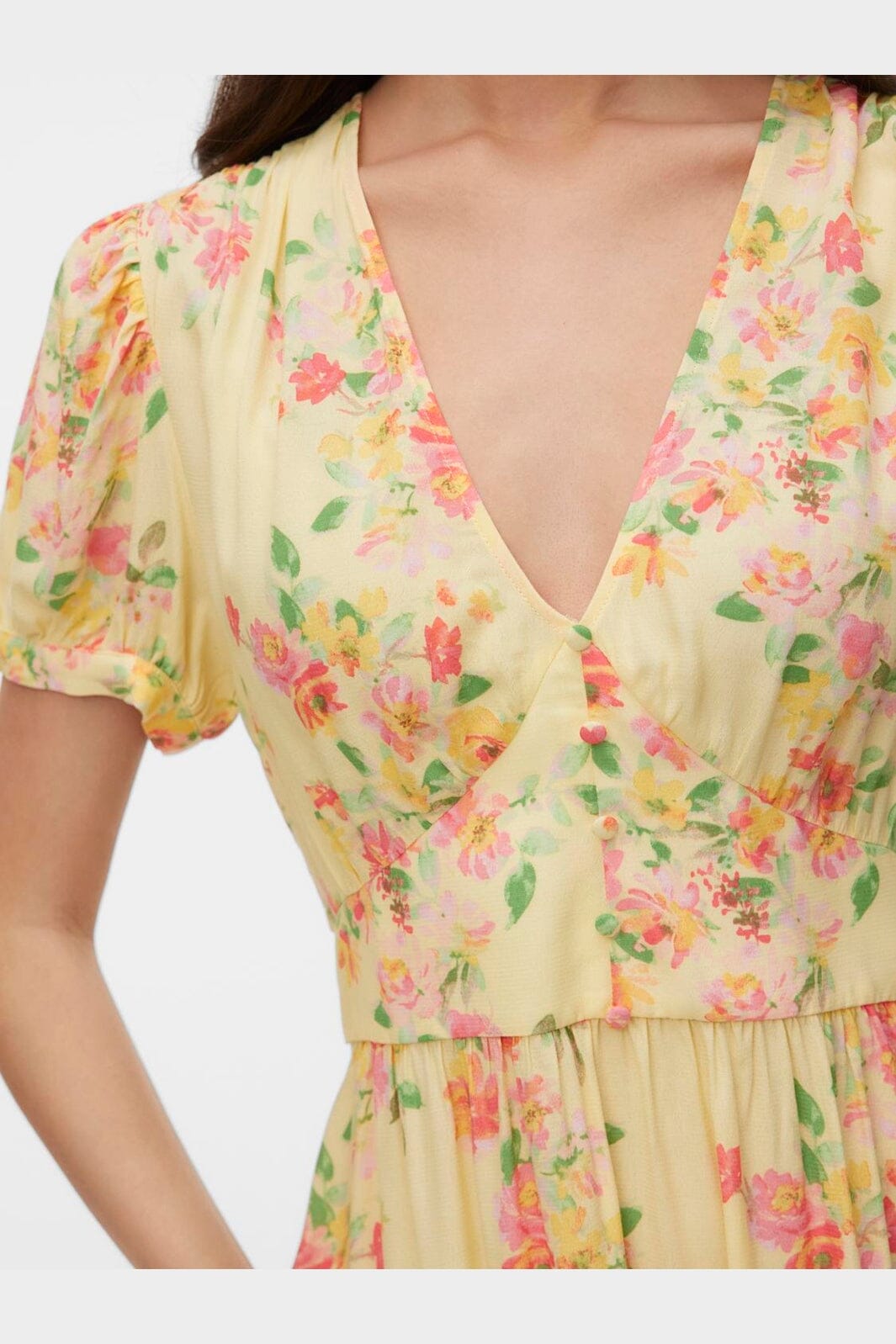 Vero Moda Vmvilma Holy Ss Short Dress Farge: 5035032 Golden Haze Holly