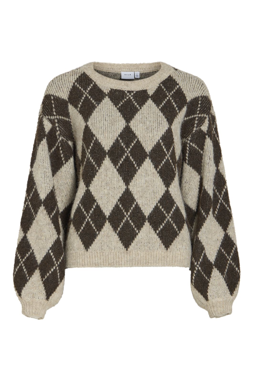 Langermet skjorte fra Vila med rutete mønster i grå og brune nyanser. Skjorten har knappelukking, klassisk krage og knappemansjetter.
