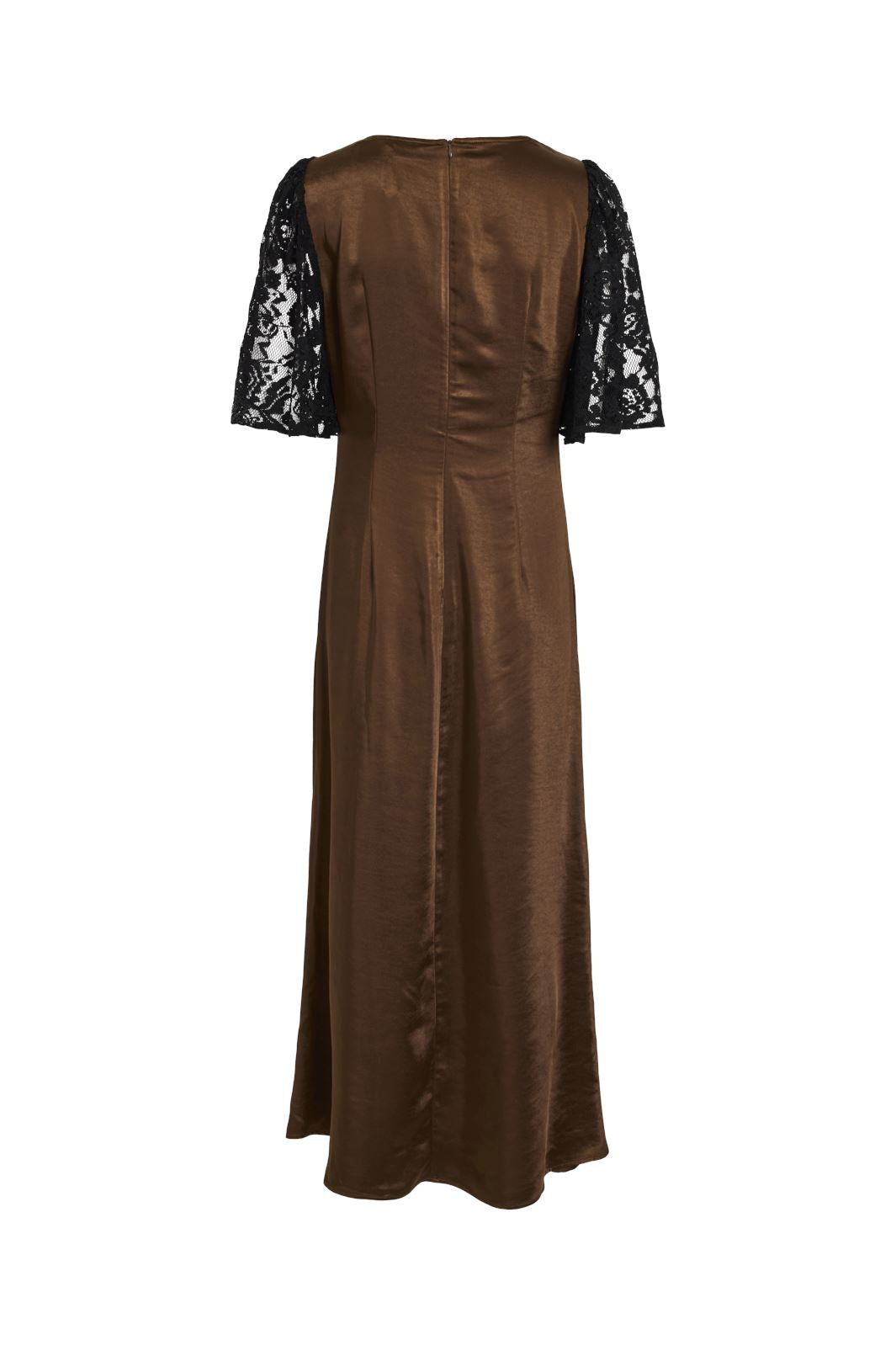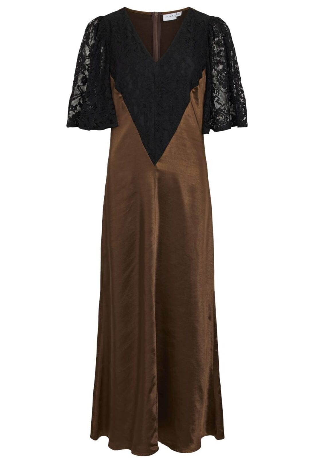 Vila Vikabiha 2/4 Lace Detail Midi Dress Farge: 4720263 Coffee Bean Black Lace