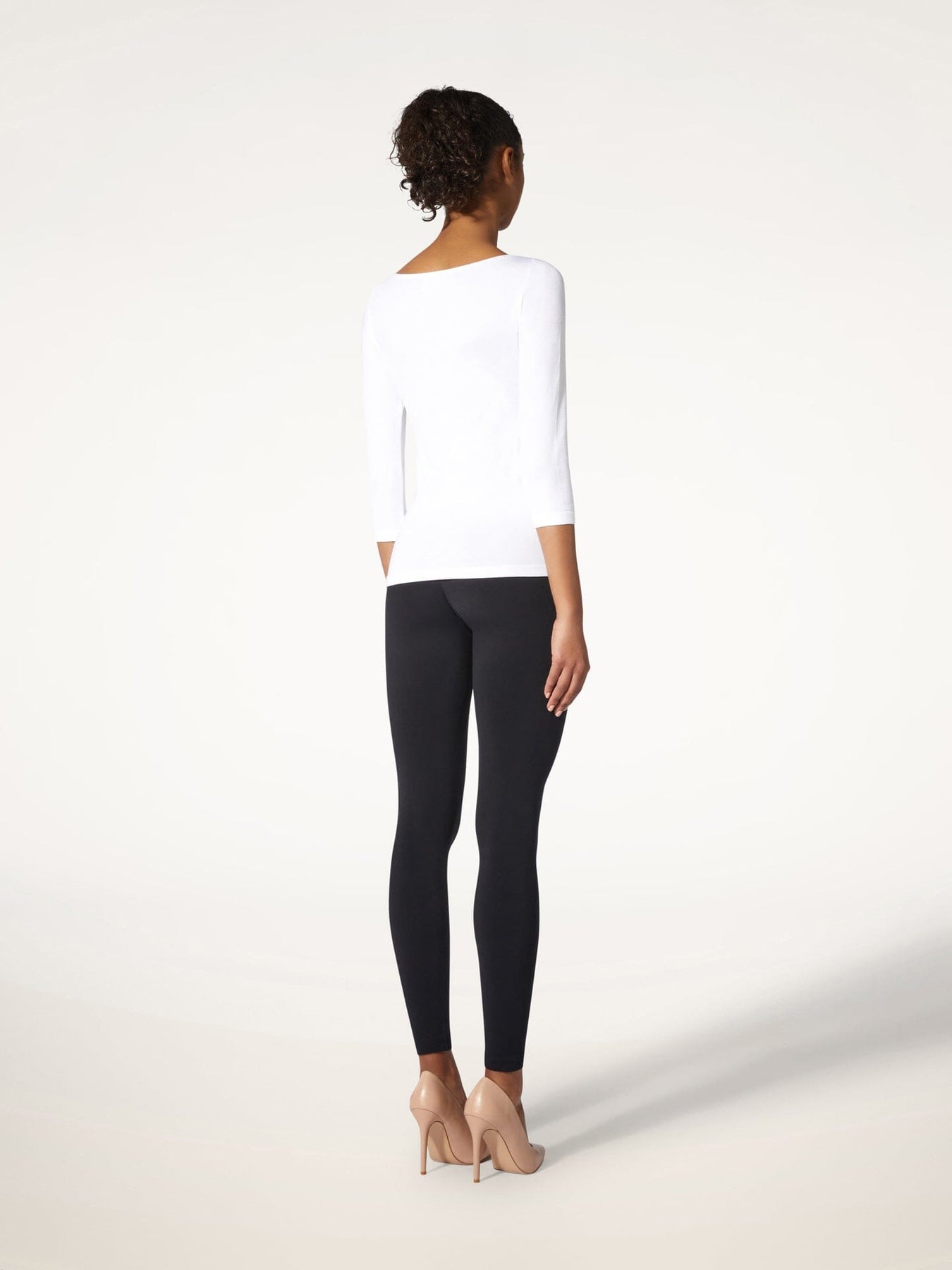 Hvit topp fra Wolford med trekvartlange ermer og båthals. Den tettsittende passformen gir toppen en glatt finish.