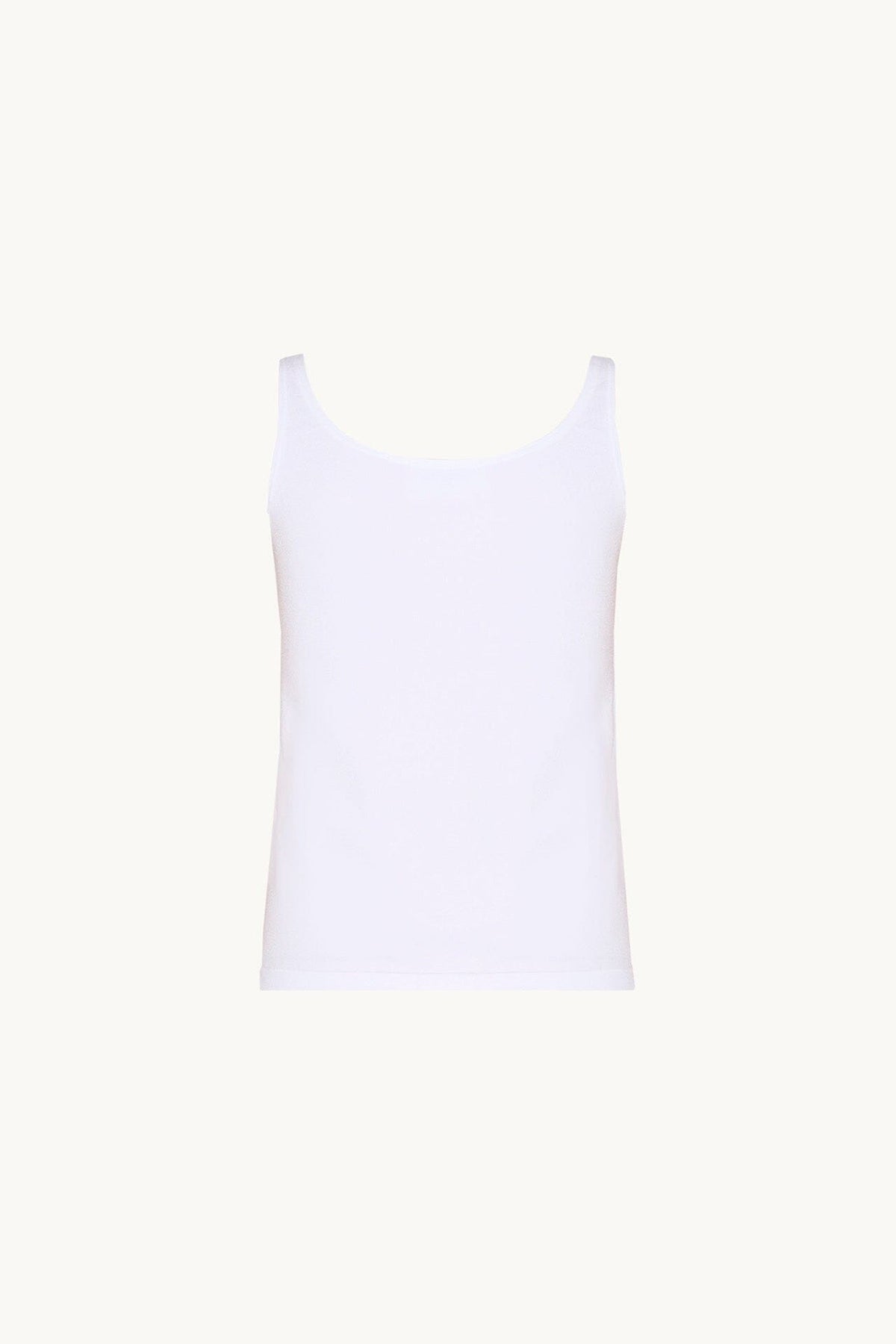 Hvit ermeløs topp fra Wolford. Toppen har en rund halsutringning og en tettsittende passform. Den er laget i en ensfarget hvit nyanse.