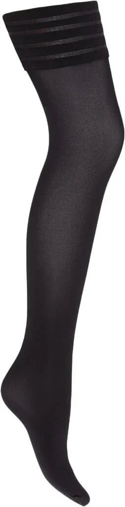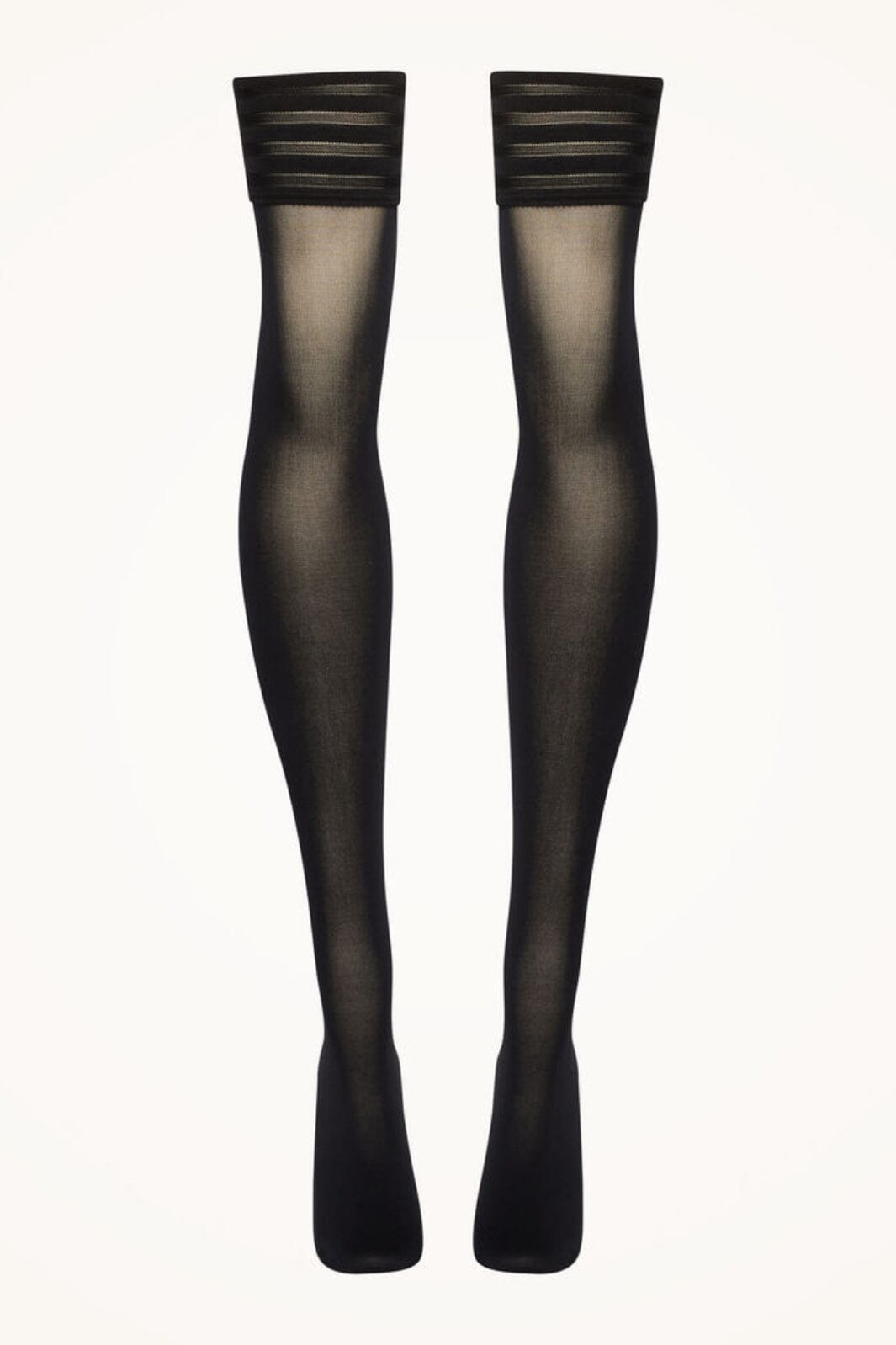 Sorte stay-ups fra Wolford med matt overflate. Strømpene har en bred elastisk kant på toppen og er laget i den velkjente Velvet De Luxe 50-modellen.