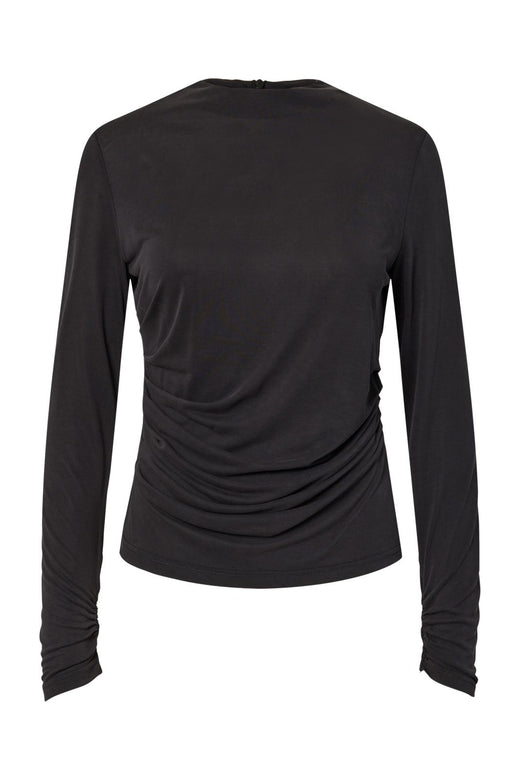 Svart langermet topp fra Y. A.S med rund halsutskjæring. Toppen har rynkedetaljer foran og en regular fit-passform, som gjør den behagelig å ha på.